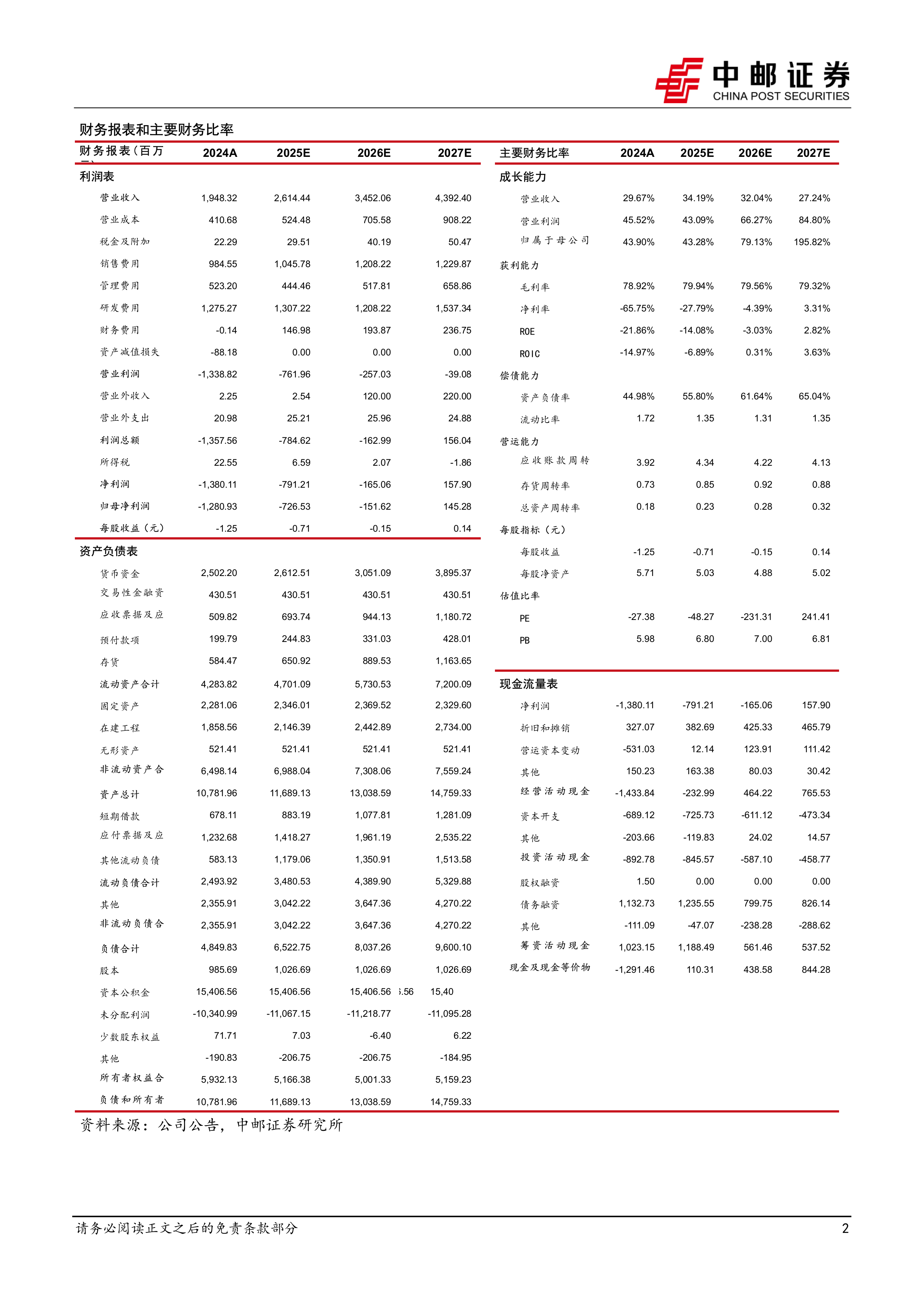 预计公司2025-2027年分别实现营业收入26.1/34.5/43.9亿元,归母净利润-7.3/-1.5/1.5亿元。公司商业化稳步推进及BD潜力较大,看好后续高成长性。