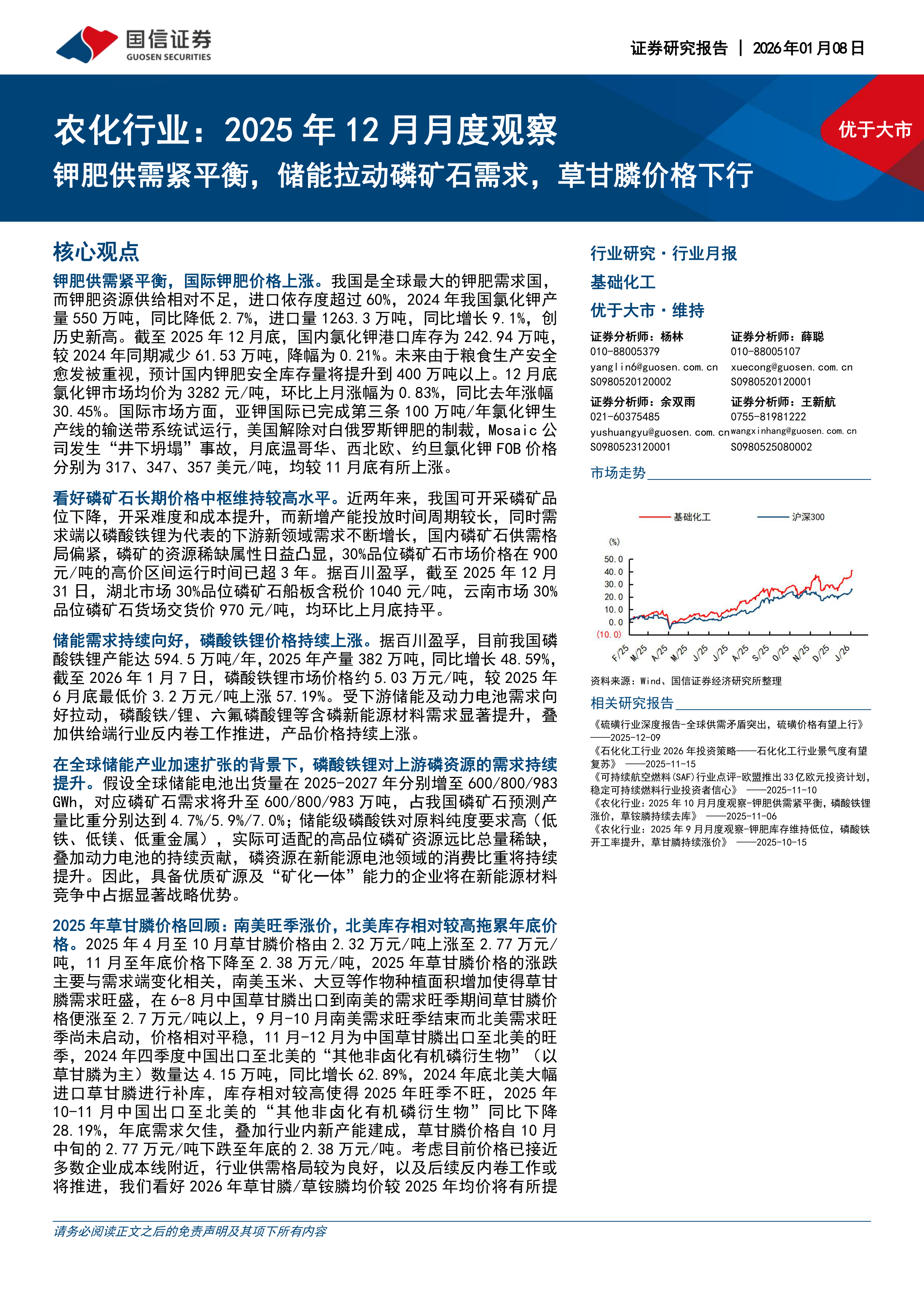 农化行业:2025年12月月度观察:钾肥供需紧平衡,储能拉动磷矿石需求,草甘膦价格下行