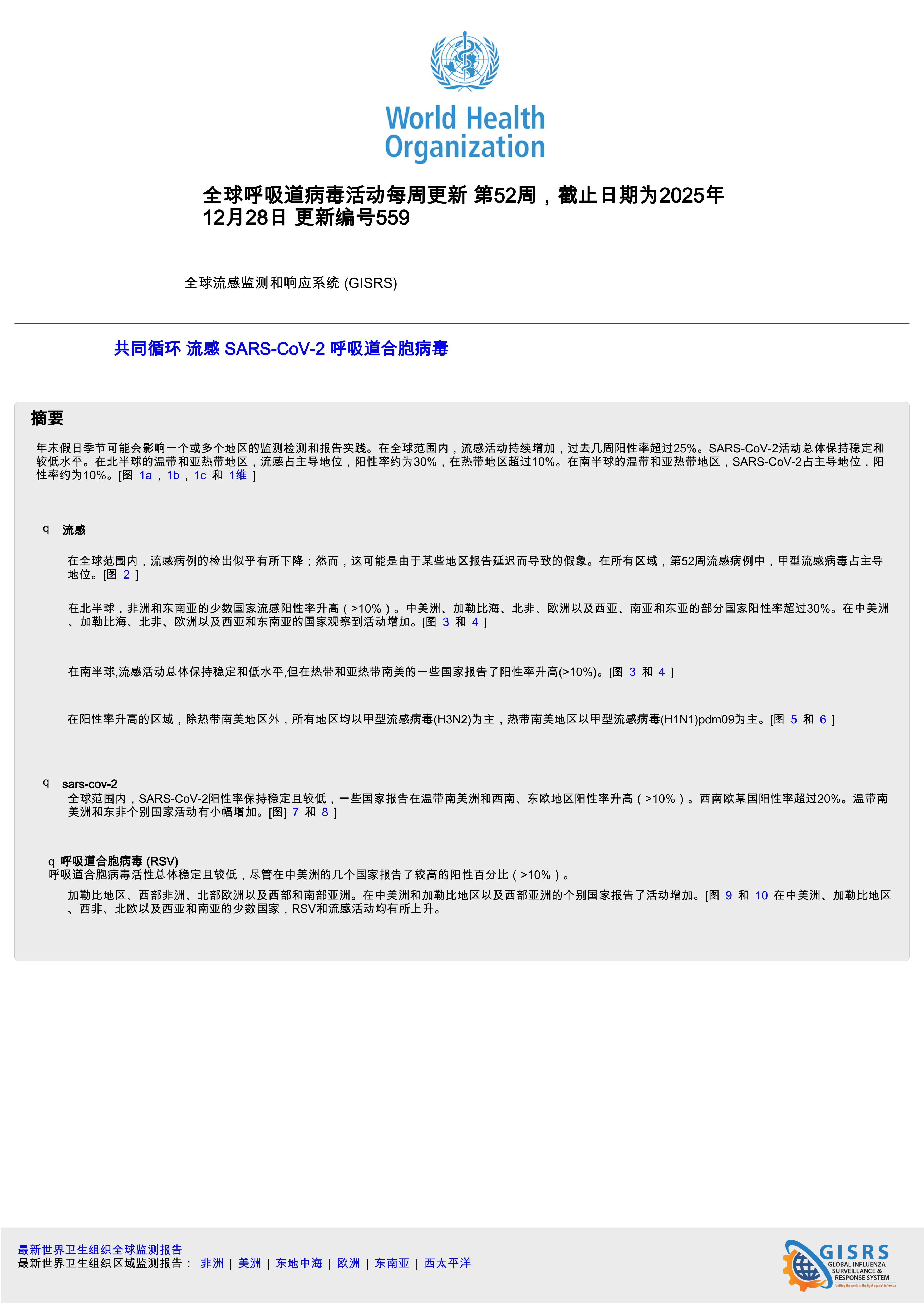 全球呼吸道病毒活动每周更新第52周,截止日期为2025年12月28日更新编号559