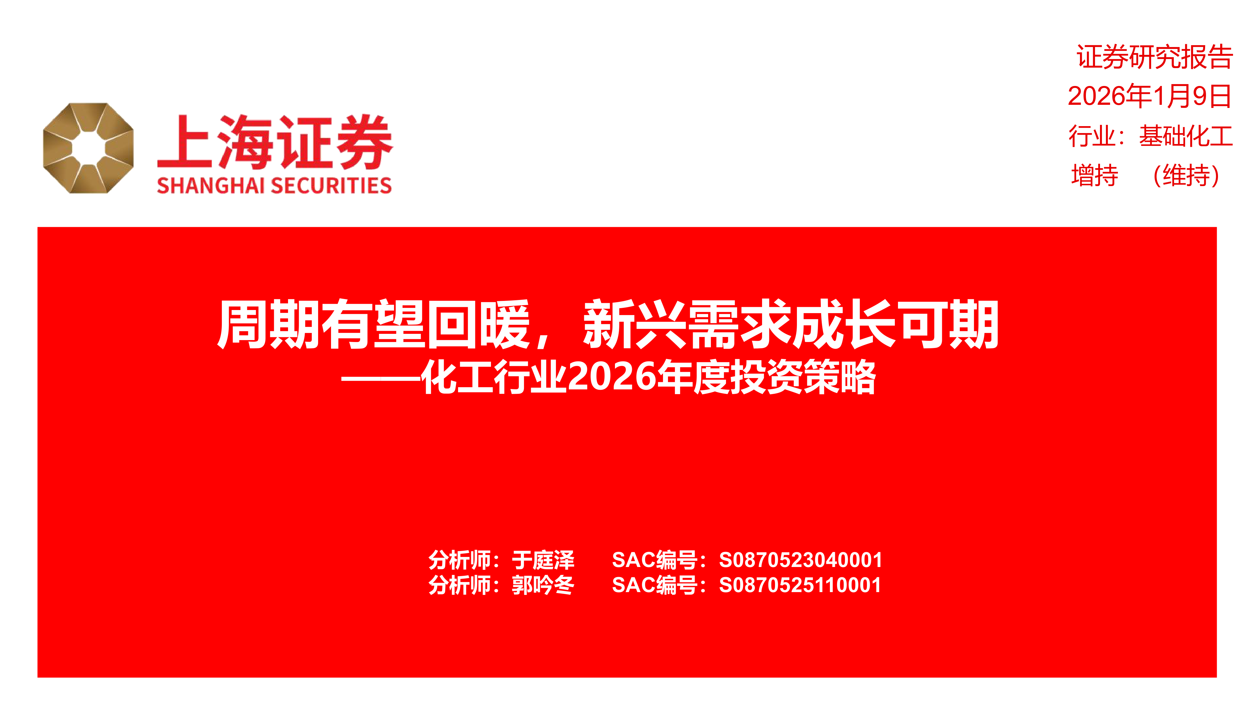 化工行业2026年度投资策略:周期有望回暖,新兴需求成长可期