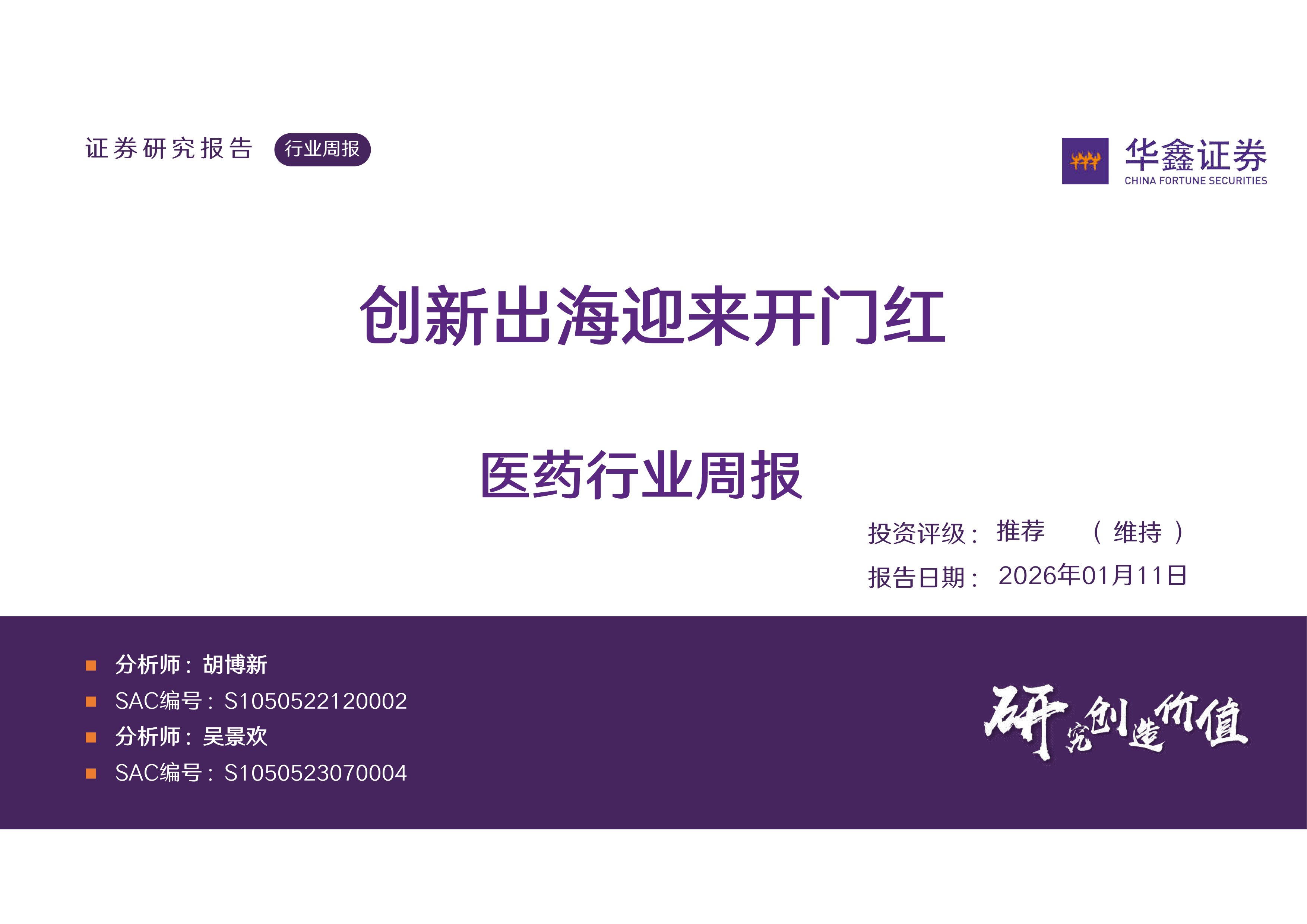 2026年中国创新出海趋势持续强化,同时市场对创新药配置有望回升,维持医药行业“推荐”的评级,具体的推选方向和选股思路如下: