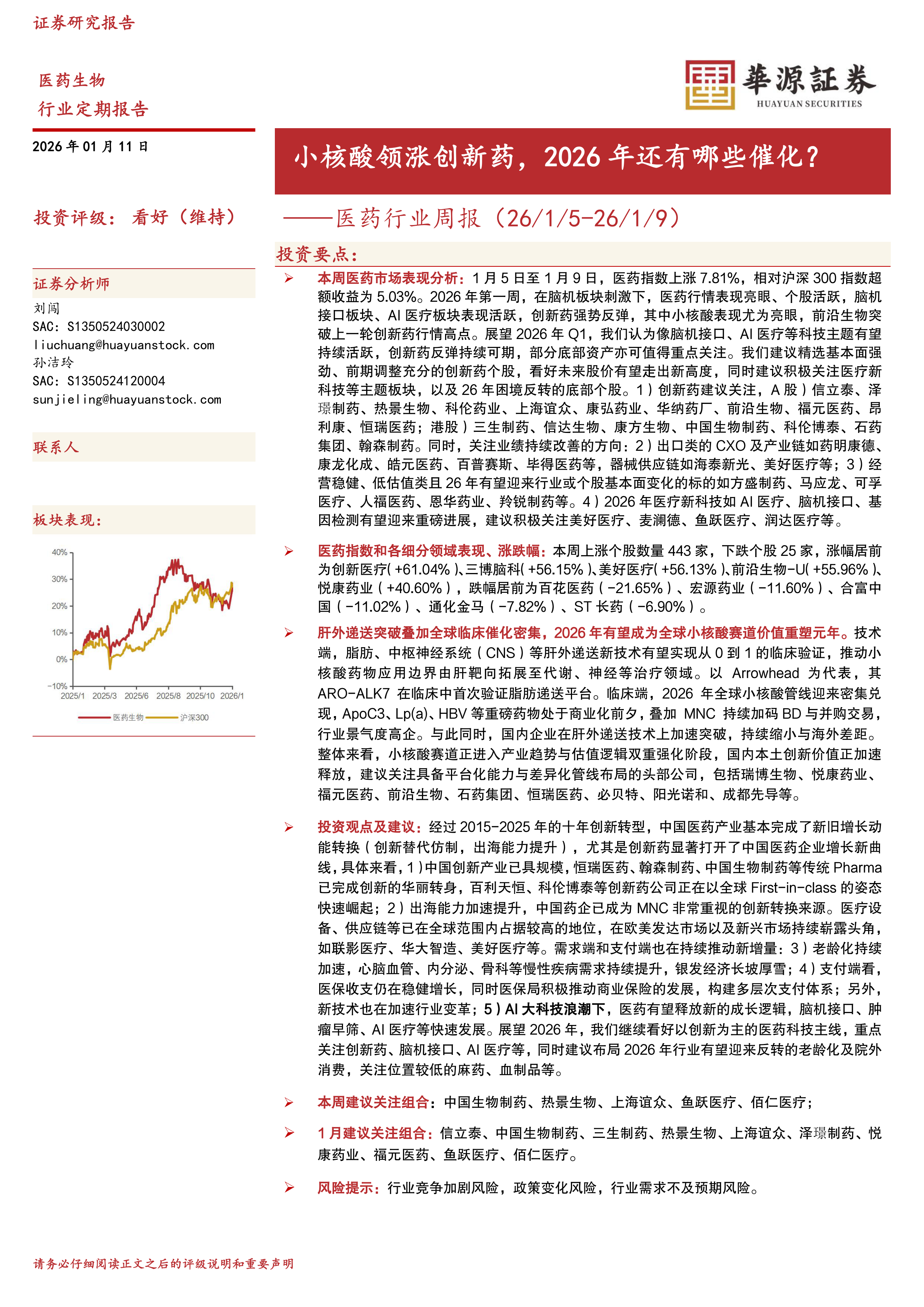 医药行业周报:小核酸领涨创新药,2026年还有哪些催化?
