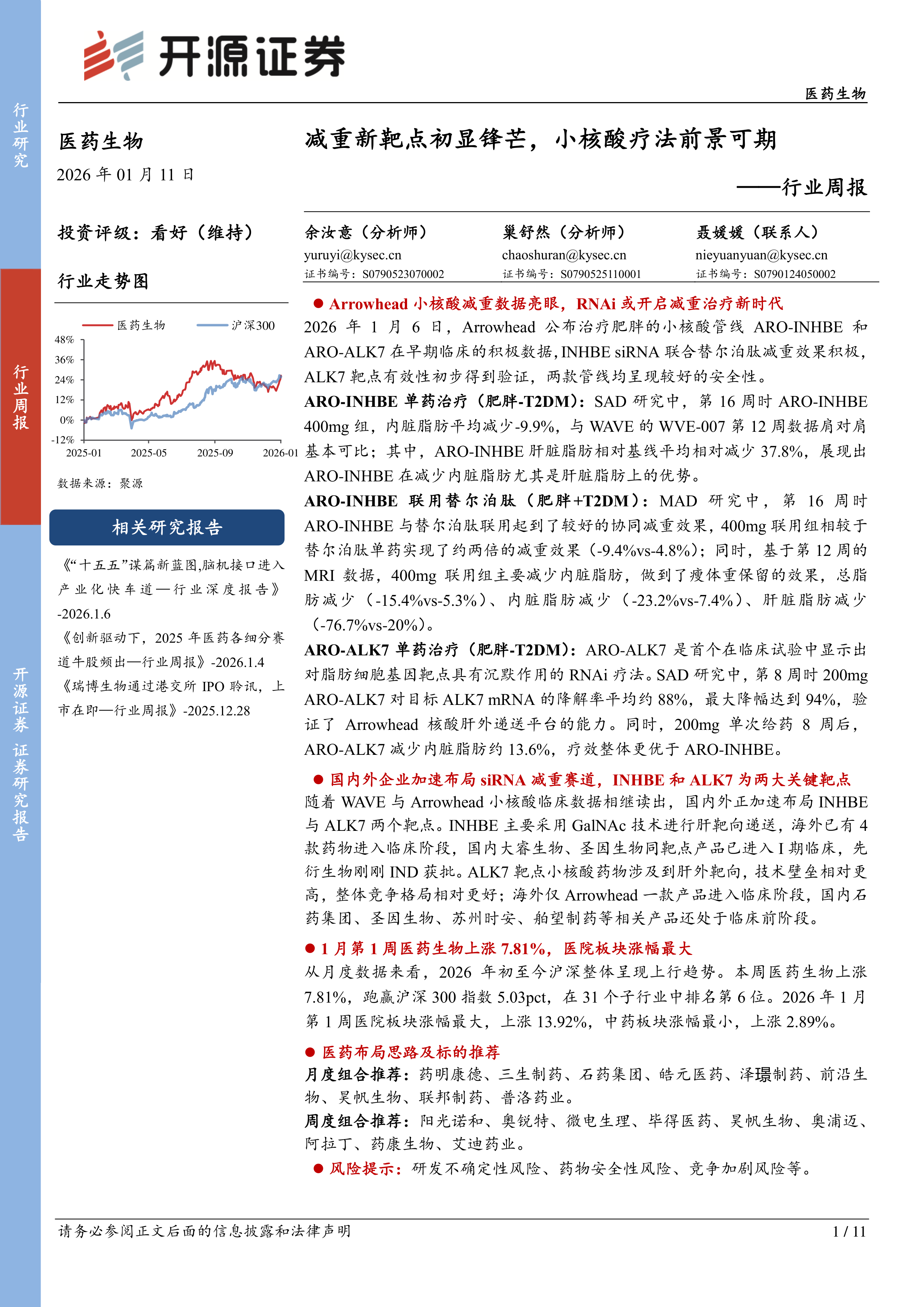 医药生物行业周报:减重新靶点初显锋芒,小核酸疗法前景可期