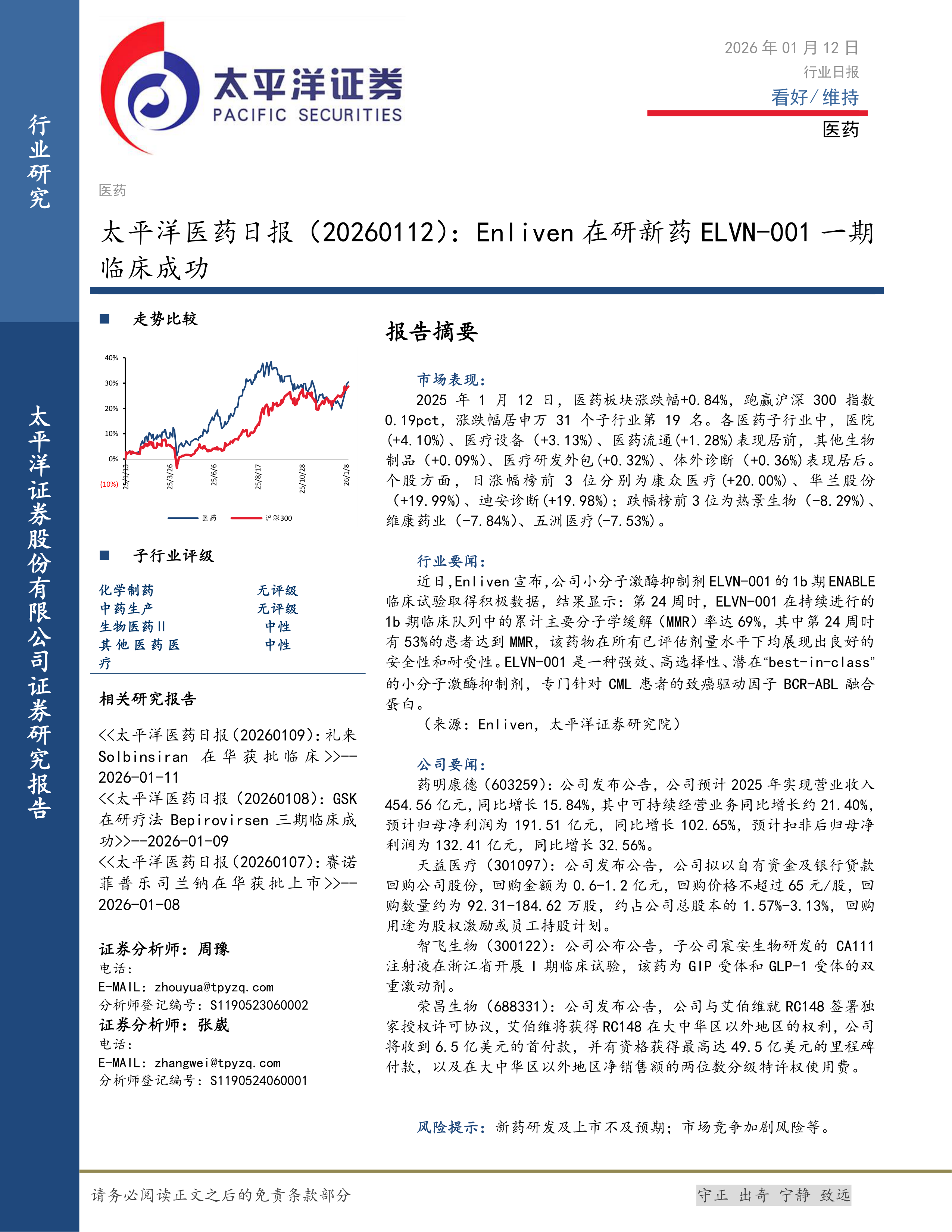 医药日报:Enliven在研新药ELVN-001一期临床成功