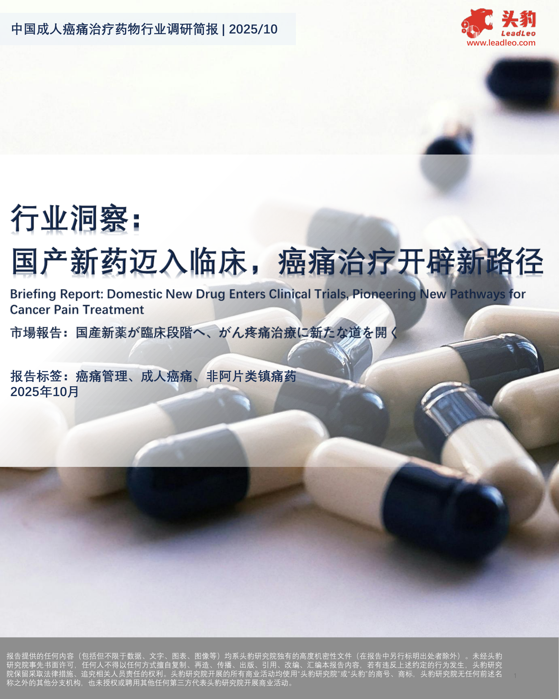 中国成人癌痛治疗药物行业调研简报|2025/10:国产新药迈入临床,癌痛治疗开辟新路径
