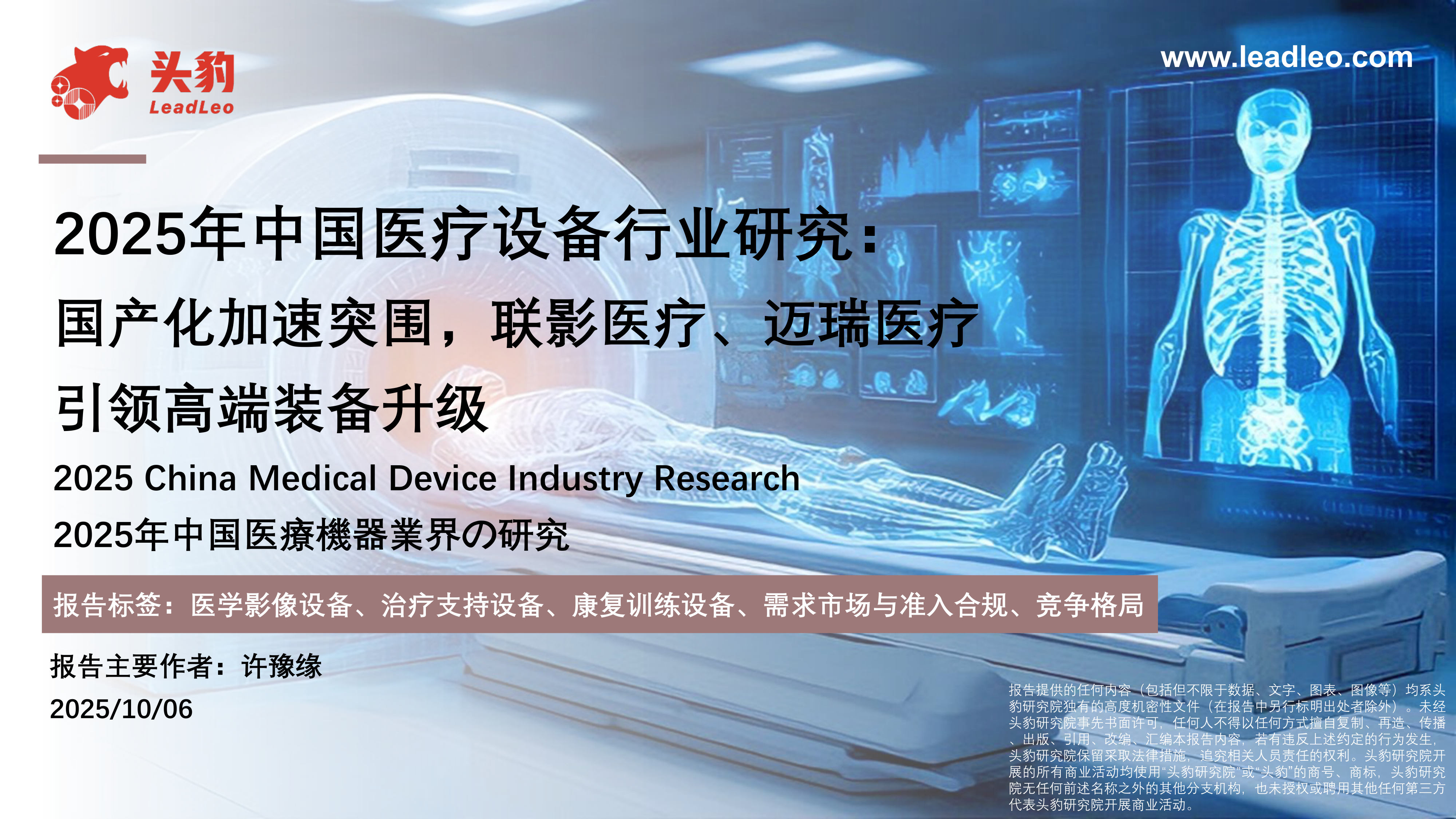 2025年中国医疗设备行业研究:国产化加速突围,联影医疗、迈瑞医疗引领高端装备升级