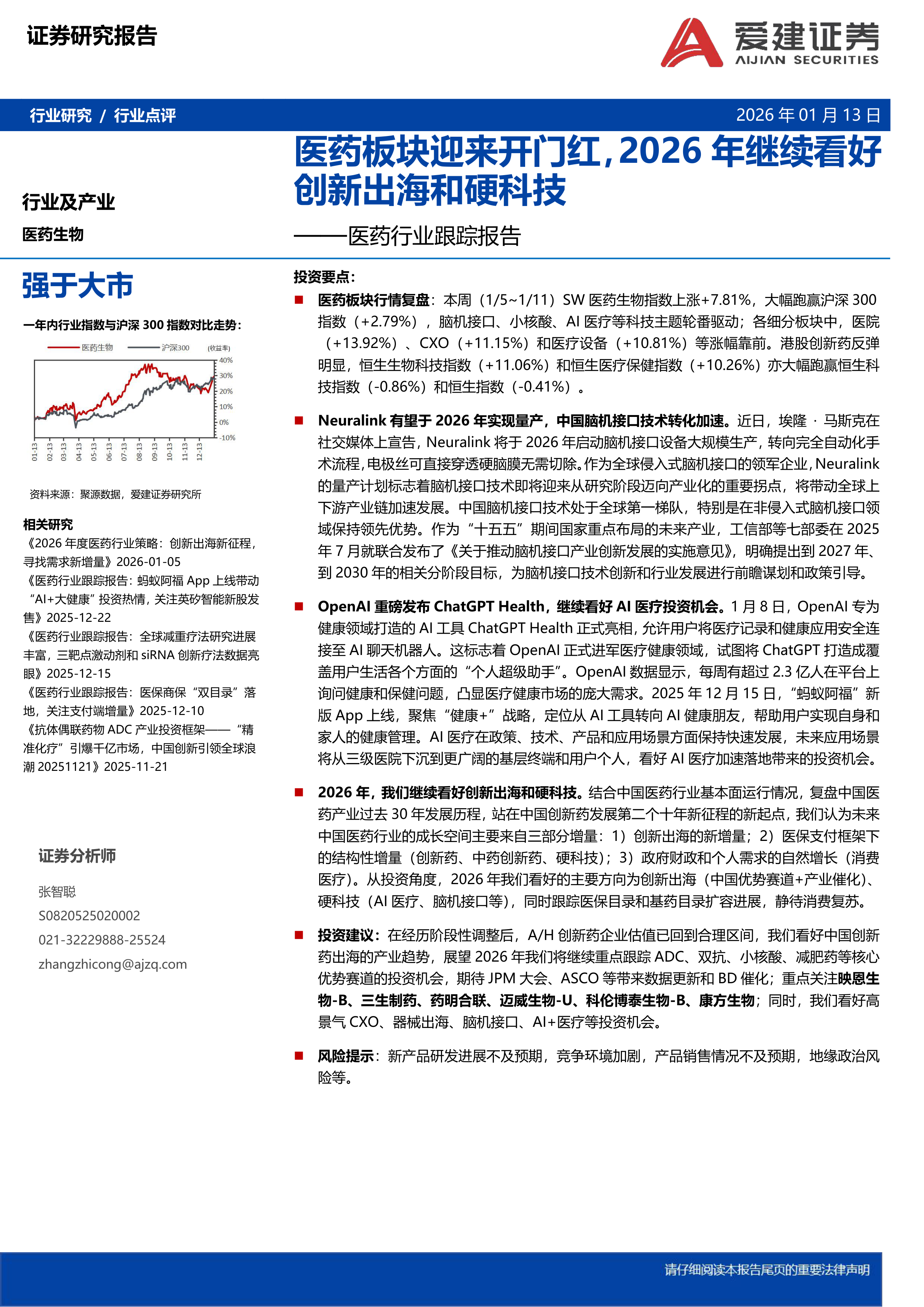 医药行业跟踪报告:医药板块迎来开门红,2026年继续看好创新出海和硬科技