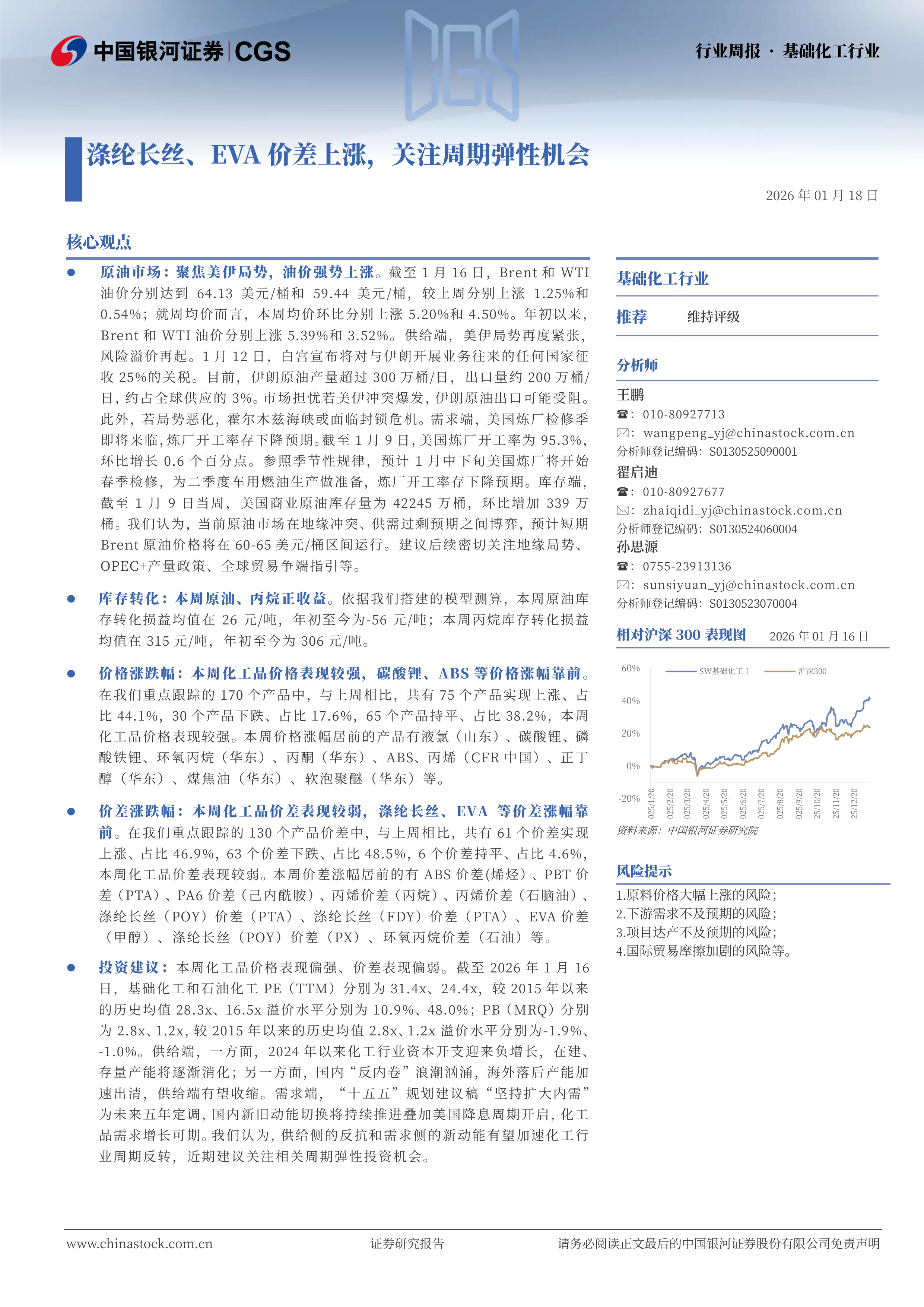 基础化工行业周报 · 基础化工行业:涤纶长丝、EVA价差上涨,关注周期弹性机会
