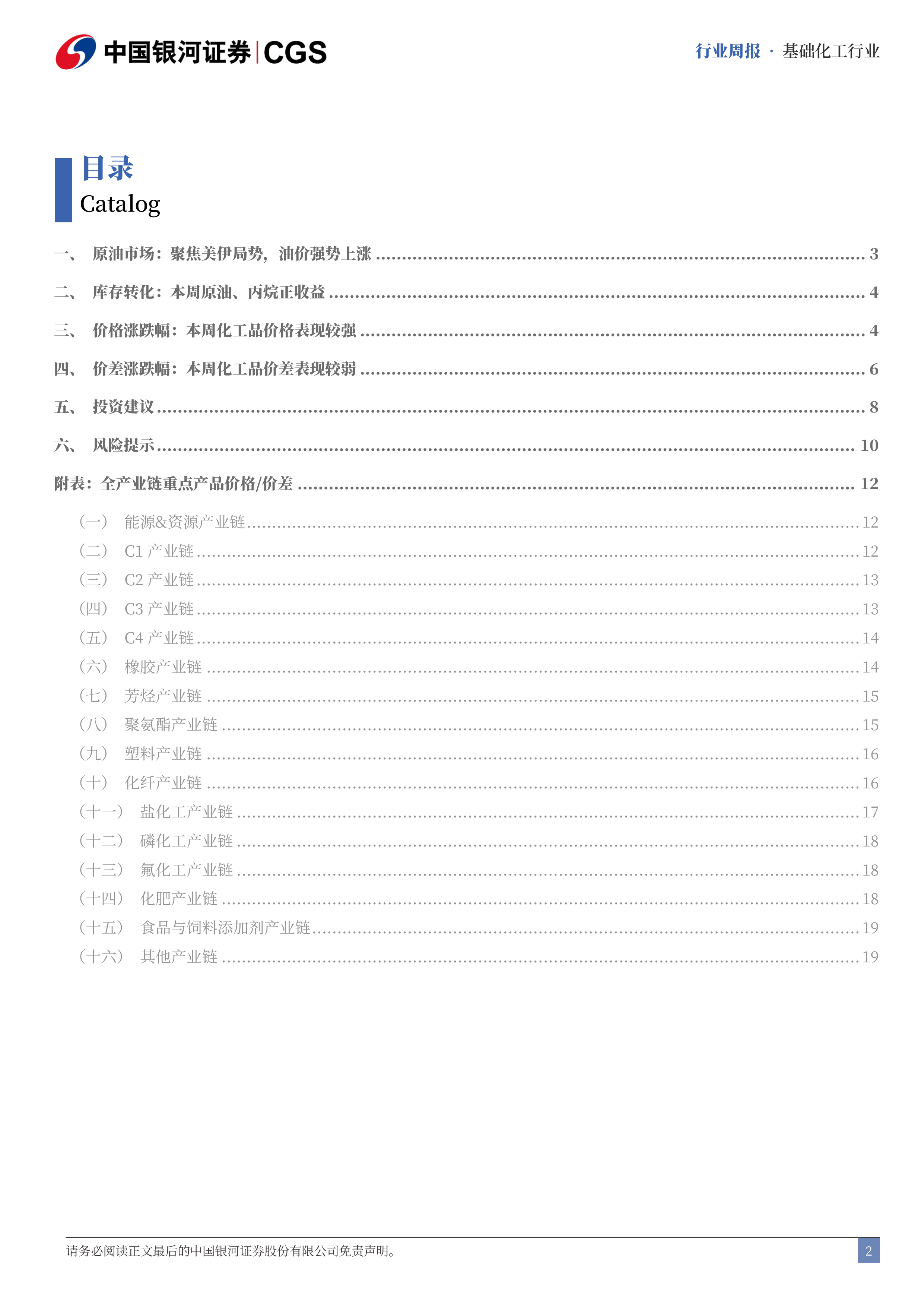 基础化工行业周报 · 基础化工行业:化工品价格表现偏强,关注周期弹性机会