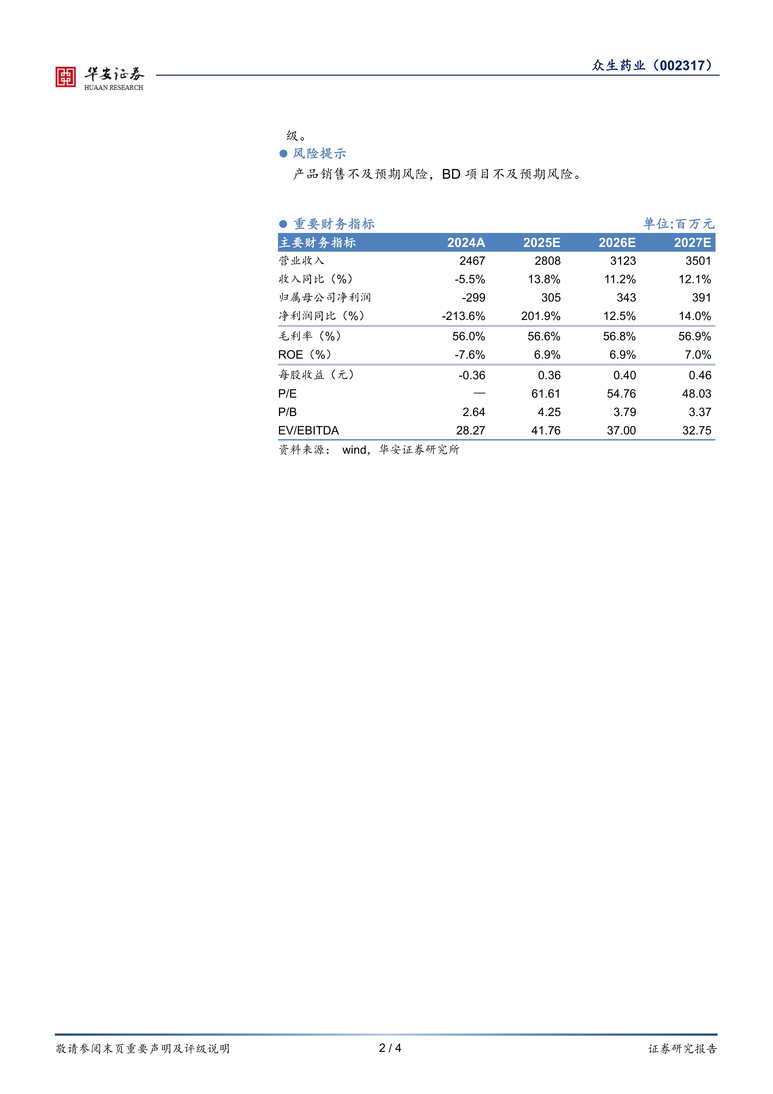 我们持续关注流感创新药昂拉地韦片获批上市后逐步放量,同时,在研产品长效GLP-1RAY1225注射液在临床Ⅱ期试验的结果,展现出了较好的疗效和安全性,国内商业化落地后,持续关注其海外权益授权,我们维持此前盈利预测,2025~2027年收入分别28.08/31.23/35.01亿元,同比增长13.8%/11.2%/12.1%;归母净利润3.05/3.43/3.91亿元,同比增长201.9%/12.5%/14.0%,对应估值为62X/55X/48X。维持“买入”投资评级。
