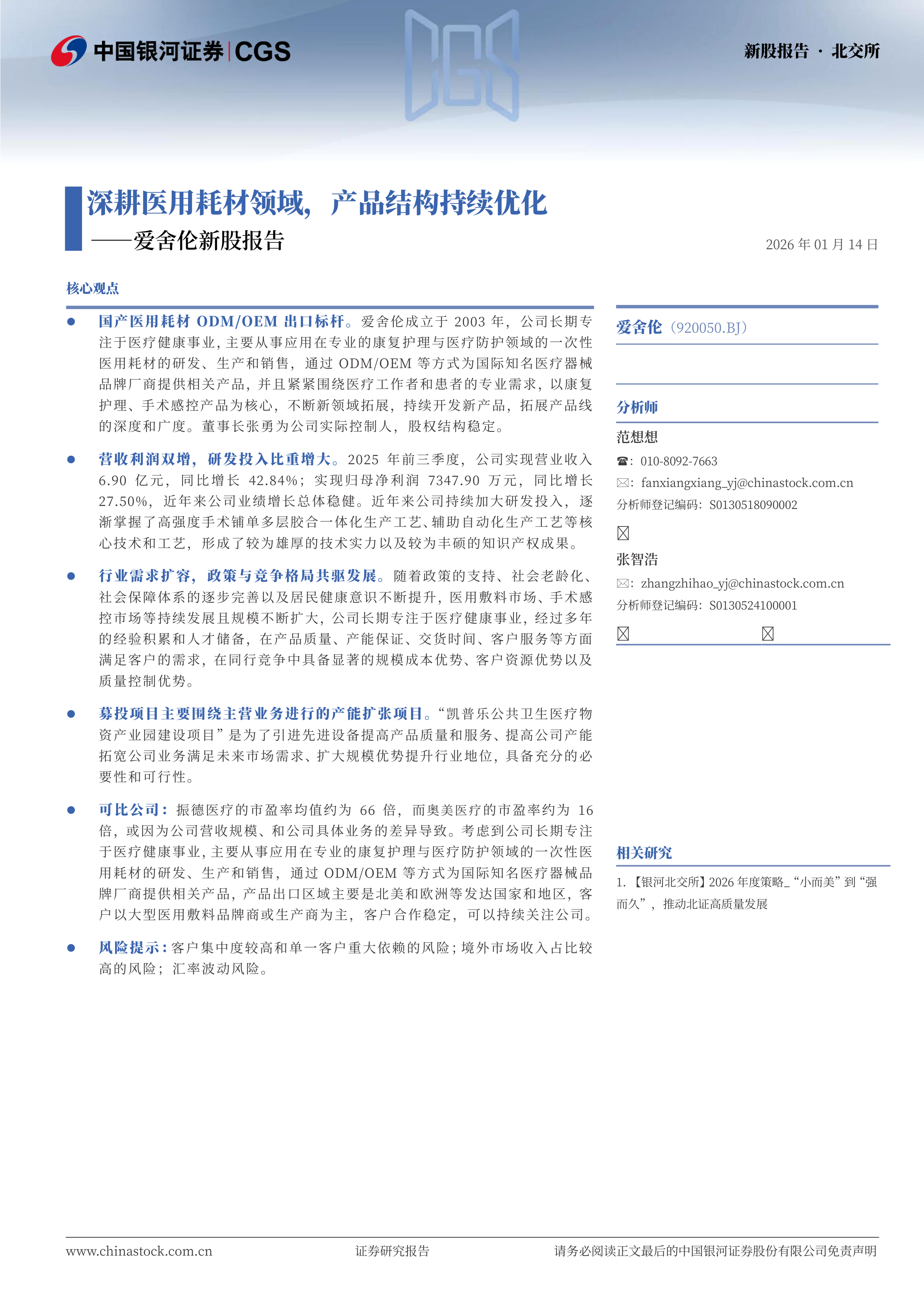 爱舍伦新股报告:深耕医用耗材领域,产品结构持续优化