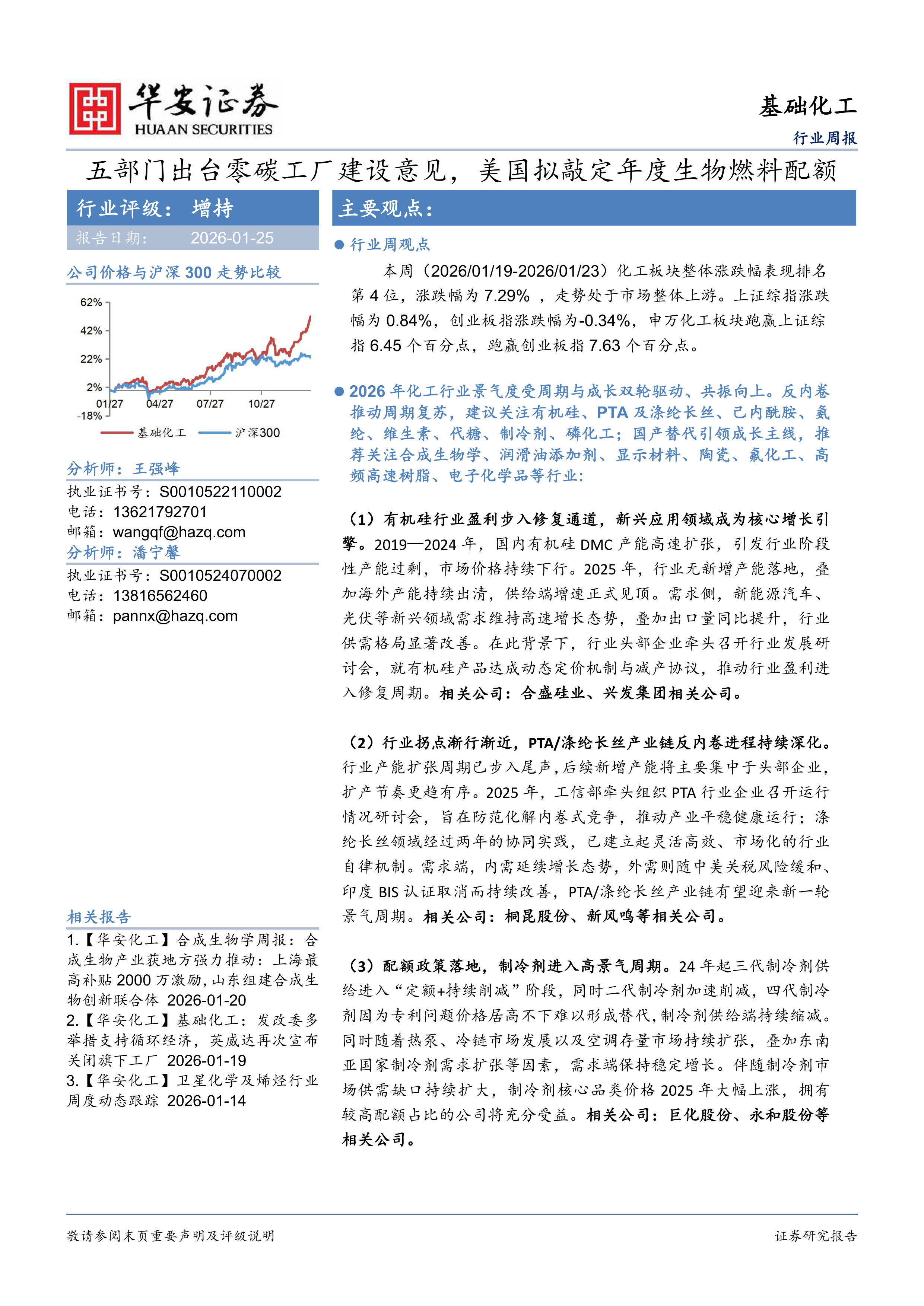 基础化工行业周报:五部门出台零碳工厂建设意见,美国拟敲定年度生物燃料配额