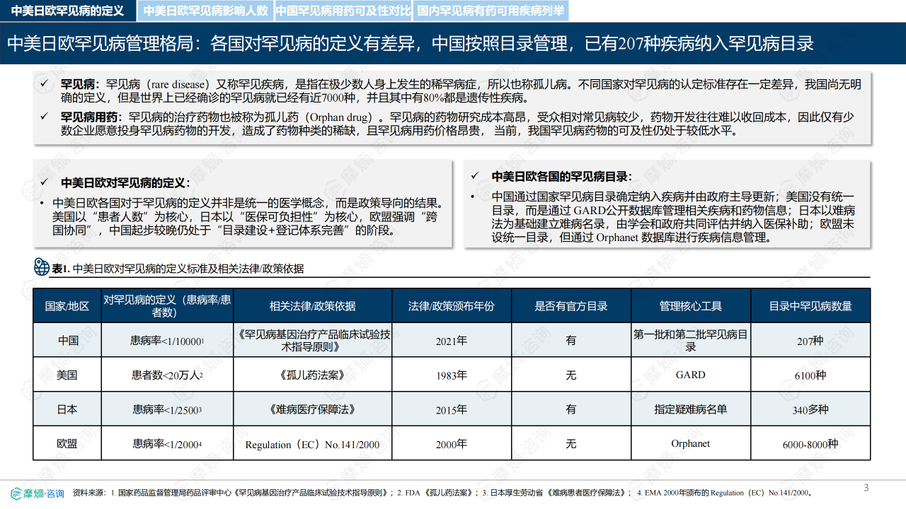 2025年全球罕见病行业,涵盖中美日欧政策差异、五大热门研发罕见病(黑色素瘤、胶质母细胞瘤等)、市场竞争格局及诺华、辉瑞等五大龙头企业布局。全球罕见病患者规模庞大,中国超2000万,政策以目录管理为核心,用药可及性持续提升。治疗领域以免疫、靶向及酶替代疗法为主,市场呈现高度集中特征。企业通过管线布局、并购合作深耕赛道,推动行业向精准化、个体化方向发展,同时政策激励与技术创新为罕见病药物研发和可及性提升提供重要支撑。