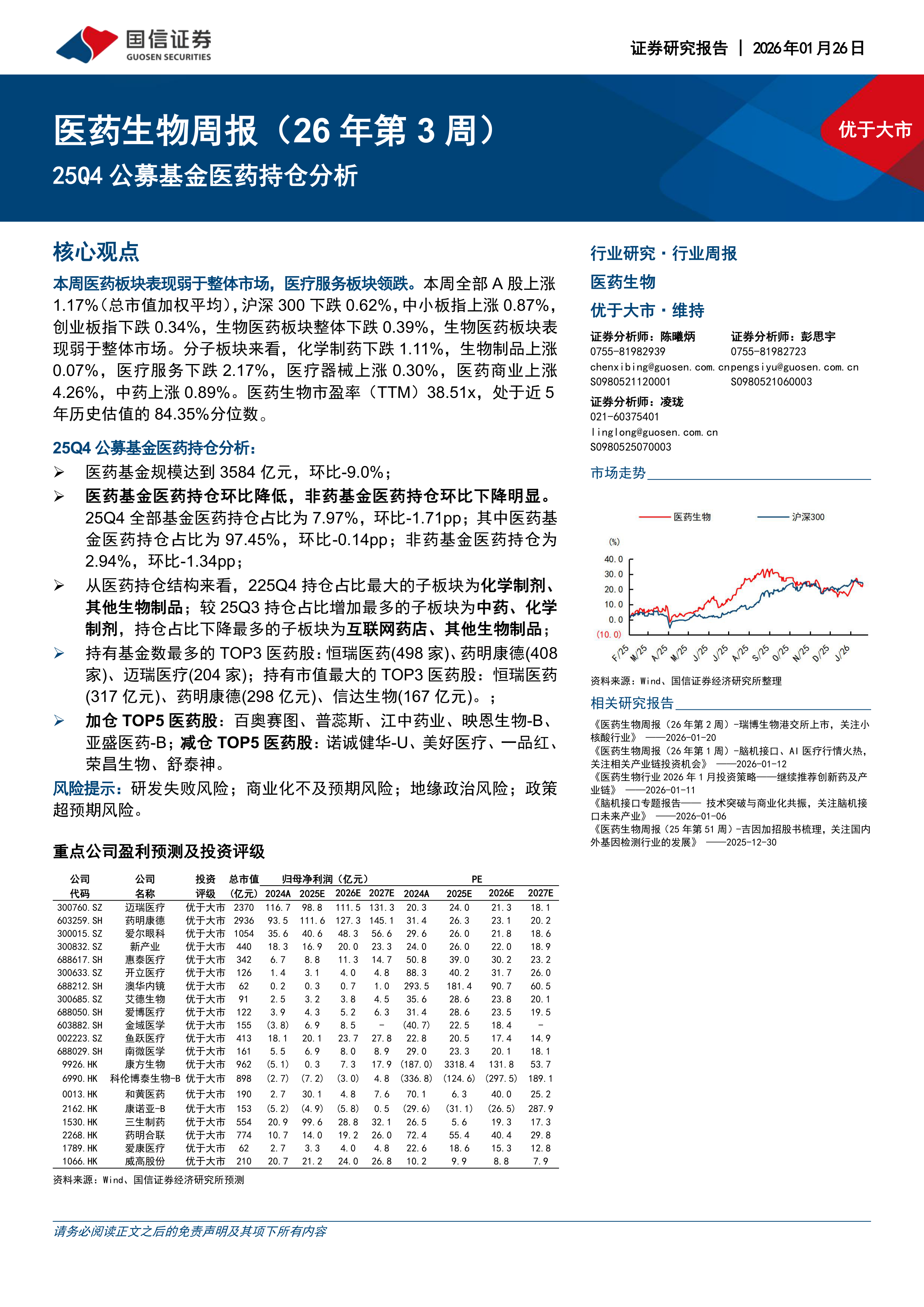 医药生物行业周报(26年第3周):25Q4公募基金医药持仓分析