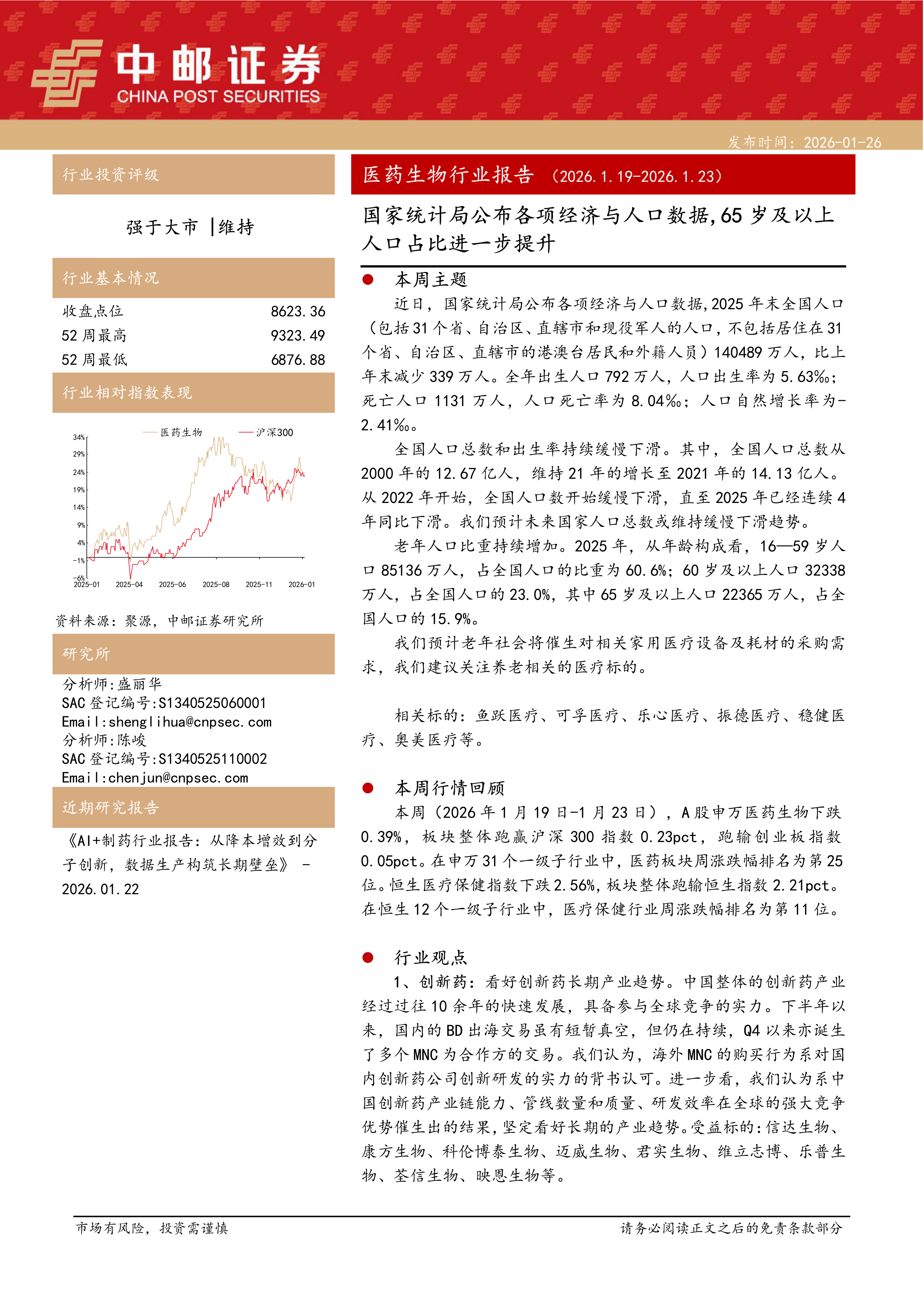 医药生物行业:国家统计局公布各项经济与人口数据,65岁及以上人口占比进一步提升