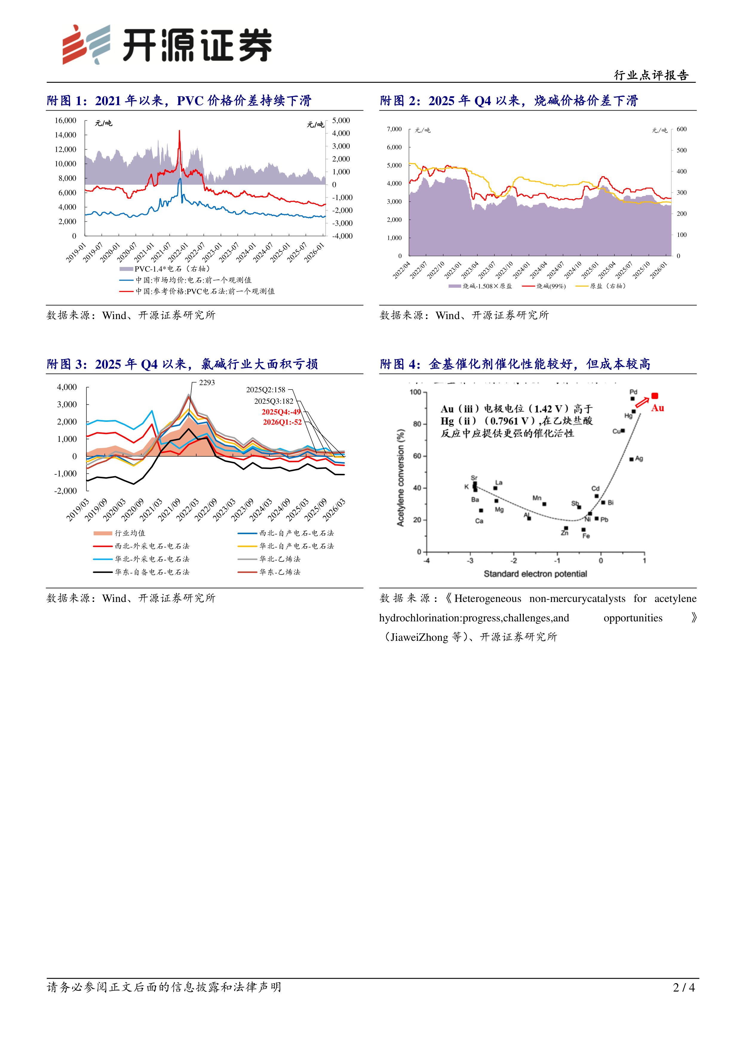 《关于汞的水俣公约》(以下简称《公约》)的目标是保护人类健康和环境免受人为排放和释放汞和汞化合物的影响。自2001年2月环境署理事会第21届会议以来,汞问题一直列入环境署理事会议程,每隔两年开会一次,电石法聚氯乙烯生产用汞工艺淘汰时限已成为近几次《公约》缔约方大会谈判的核心焦点。在电石法生产PVC的过程中,乙炔与氯化氢的反应需以氯化汞作为催化剂。然而在催化反应过程中,氯化汞易发生汞流失,不仅造成催化剂活性下降,还可能对环境和人体健康带来潜在危害。而《公约》已经明确2032年将禁止全球原生汞矿的开采,届时将无法再利用氯化汞作为催化剂生产PVC。目前有两种方式推动PVC无汞化:①采用金基催化剂。使用金基催化剂一方便需要改造生产产线,另一方面需要使用价格更高的黄金作为催化剂,我们预计产线改造+催化剂费用将增加PVC单吨成本100元左右。同时金基催化剂第一次加注的量较大,加上成本较高,规模较小的PVC生产企业或无力承担。②采用乙烯法生产工艺。根据我们统计,烧碱/电石法PVC配套项目单吨投资额平均为3,328元/吨,而烧碱/乙烯法PVC配套项目单吨投资额约为5,973元/吨,乙烯法PVC生产工艺所需要的投资成本更高。无论哪种方式,都将增加电石法PVC企业的成本,其中采用金基催化剂路线为较优方式。因此我们认为,电石法PVC行业触媒无汞化已成趋势,规模较小、盈利能力较弱的PVC企业或将退出。