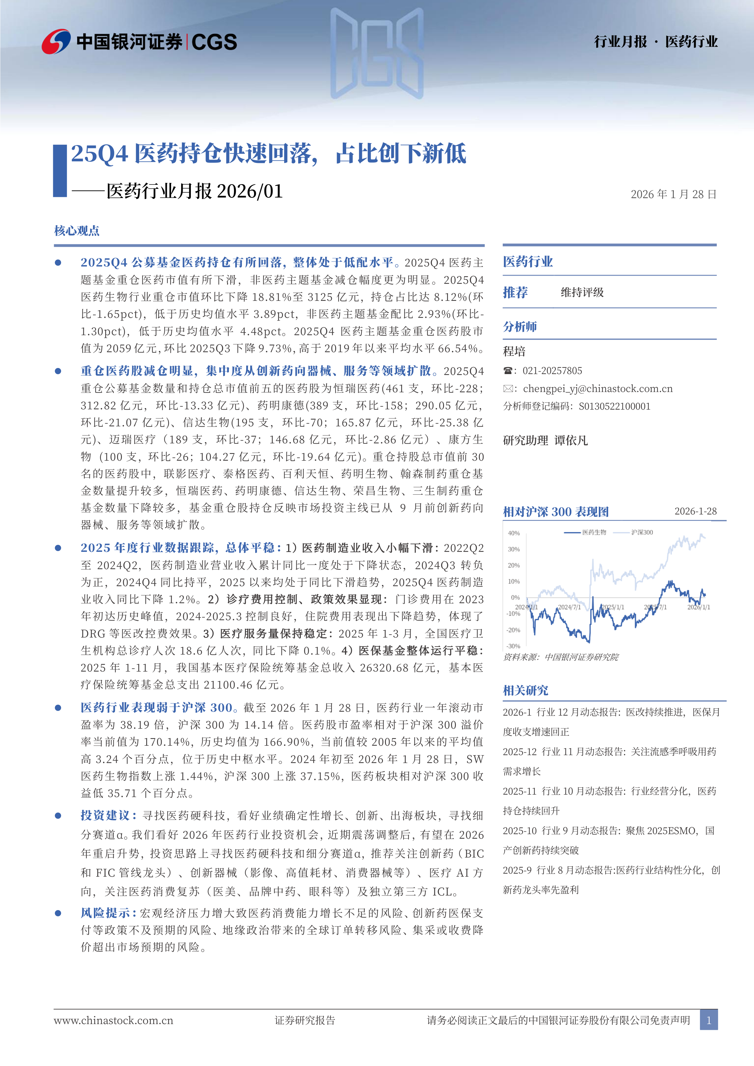 医药行业月报2026/01:25Q4医药持仓快速回落,占比创下新低