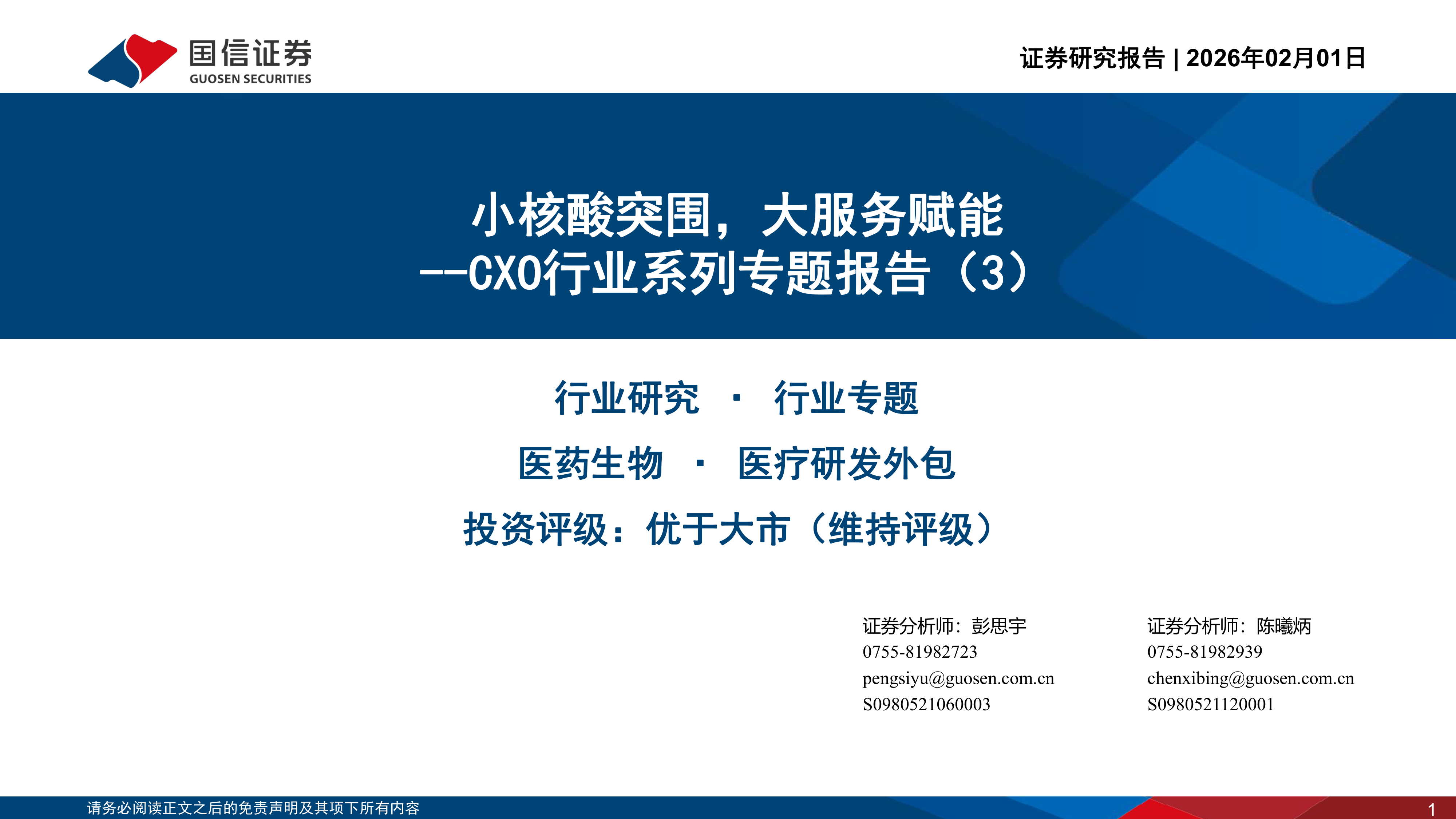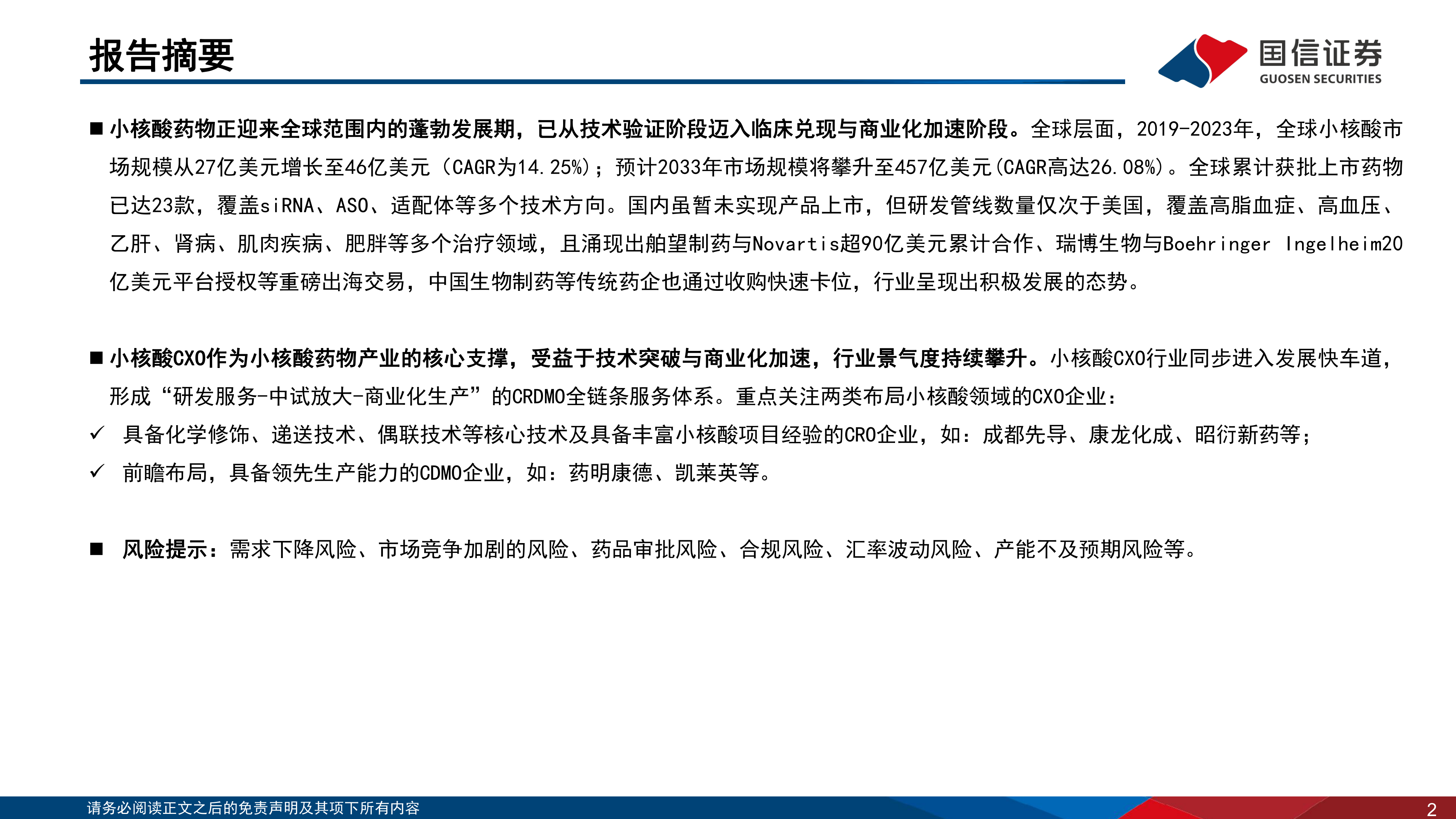 CXO行业系列专题报告(3):小核酸突围,大服务赋能