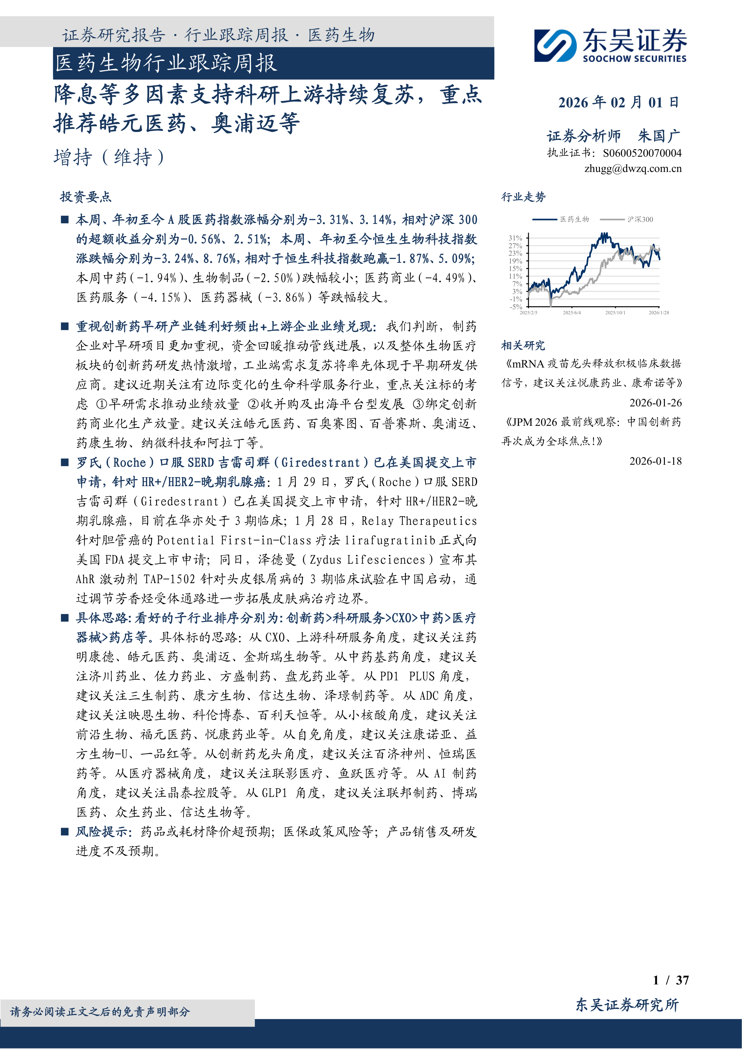 医药生物行业跟踪周报:降息等多因素支持科研上游持续复苏,重点推荐皓元医药、奥浦迈等