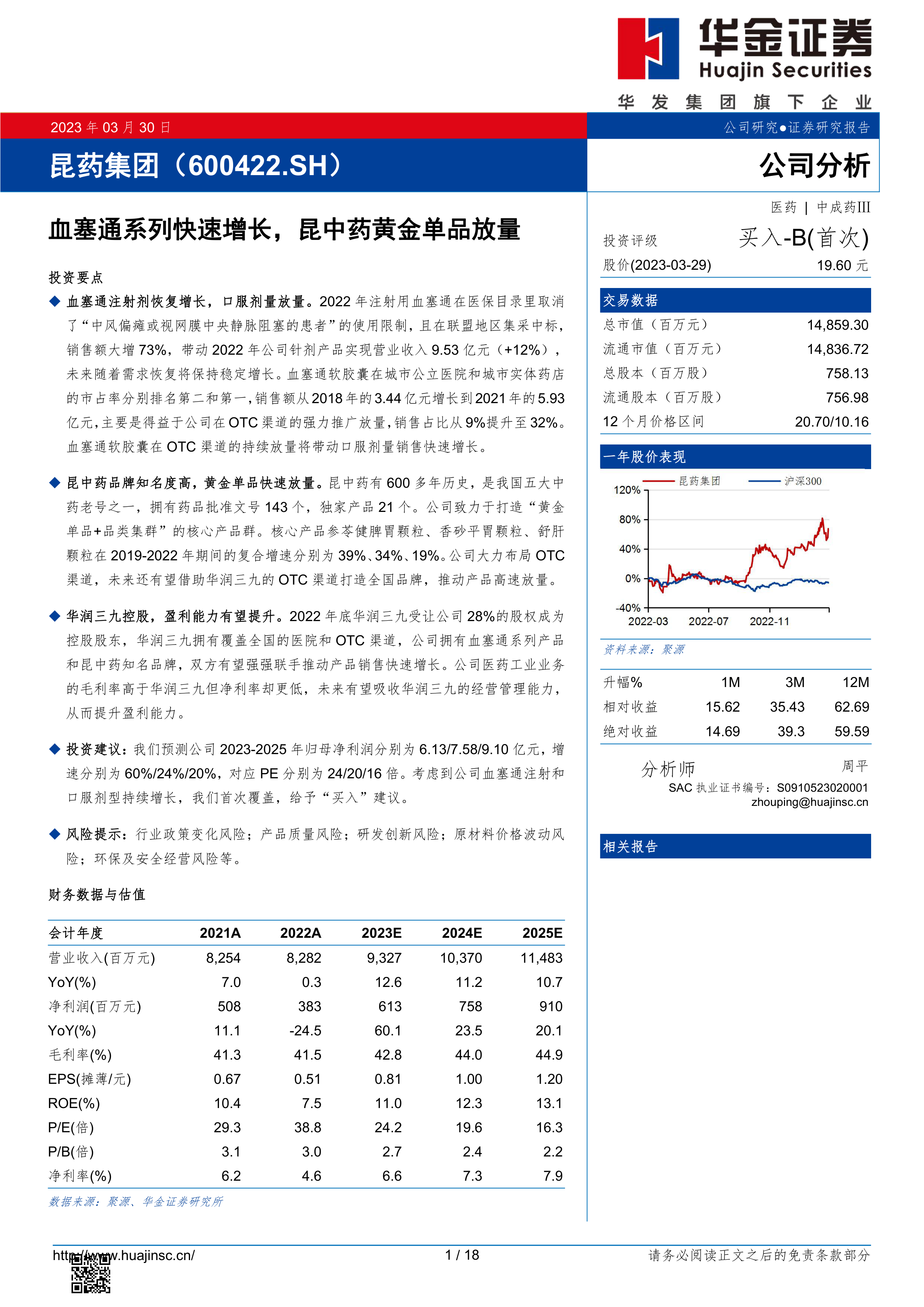 华润三九控股, 盈利能力有望提升。 2022 年底华润三九受让公司 28%的股权成为控股股东, 华润三九拥有覆盖全国的医院和 OTC 渠道, 公司拥有血塞通系列产品和昆中药知名品牌, 双方有望强强联手推动产品销售快速增长。 公司医药工业业务的毛利率高于华润三九但净利率却更低, 未来有望吸收华润三九的经营管理能力,从而提升盈利能力。