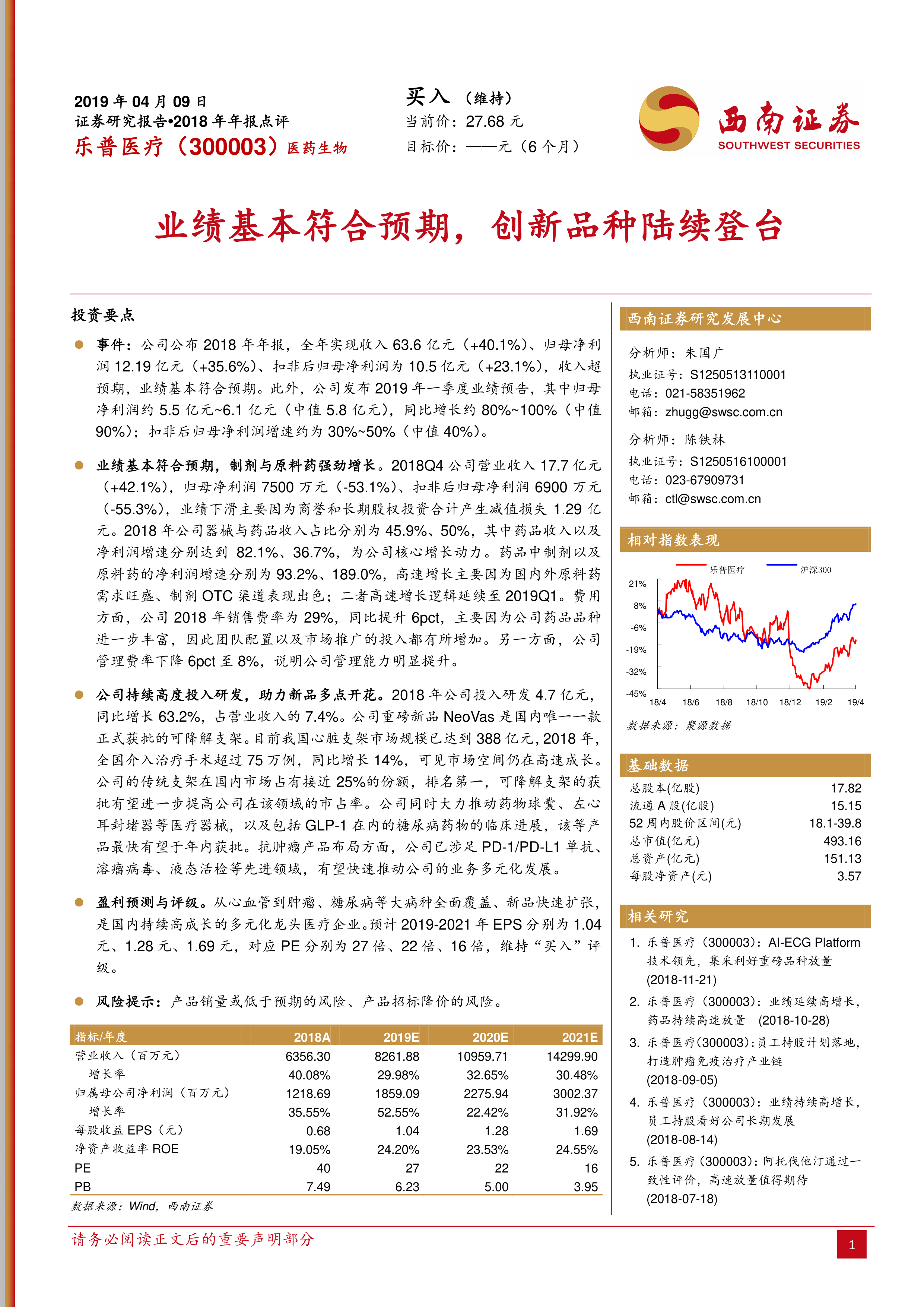 业绩基本符合预期,创新品种陆续登台