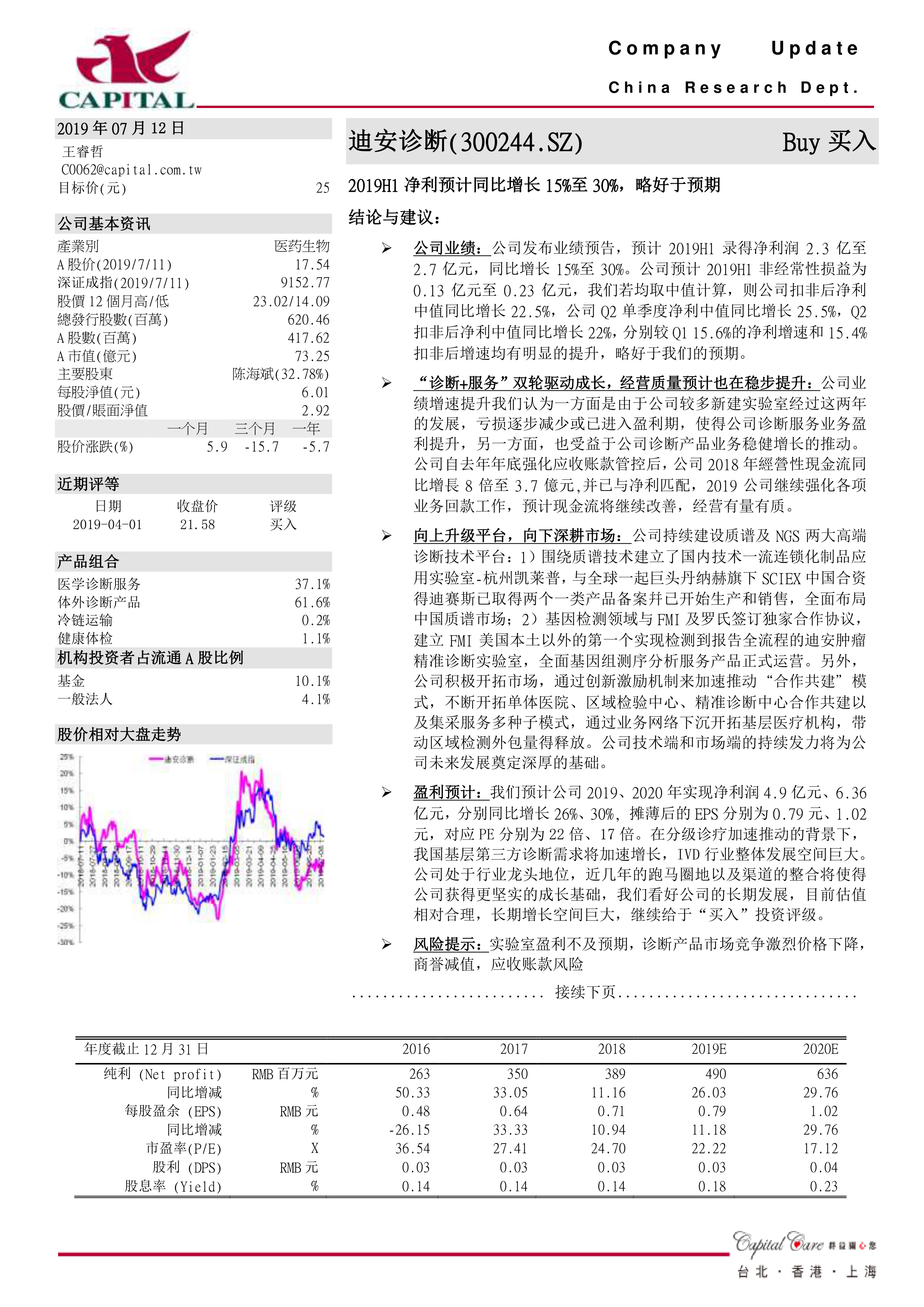 2019H1净利预计同比增长15%至30%,略好于预期