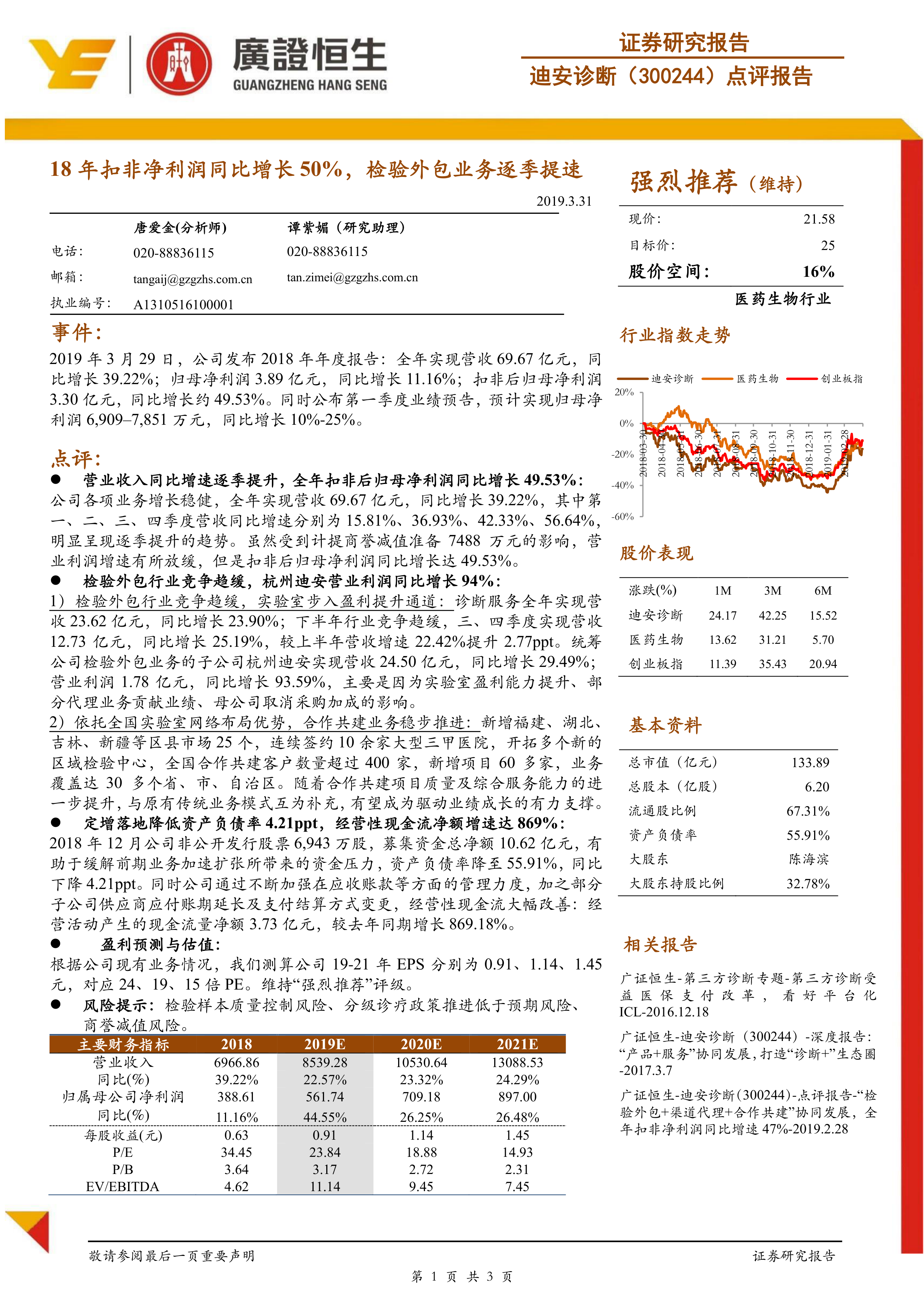 点评报告:18年扣非净利润同比增长50%,检验外包业务逐季提速