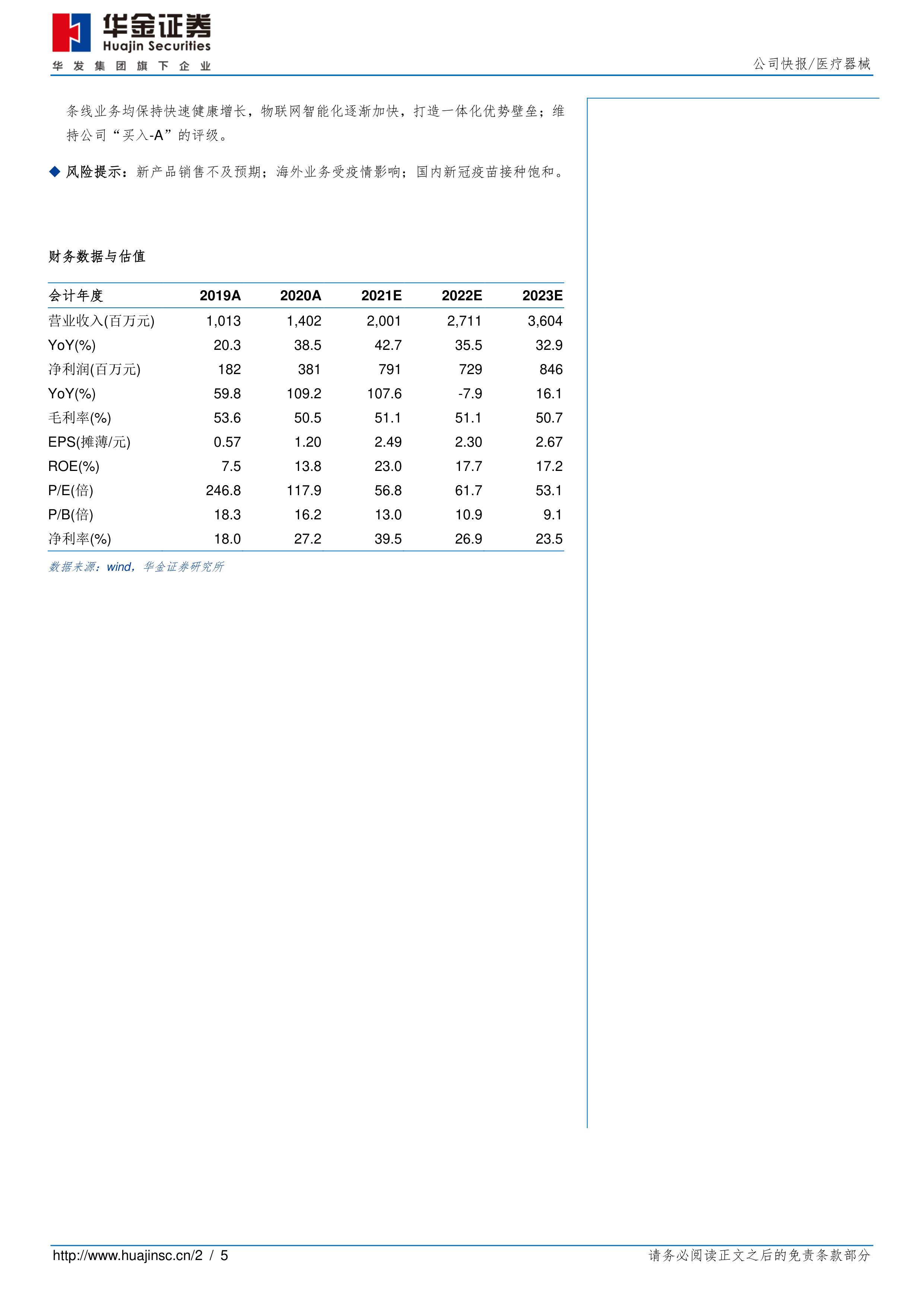 风险提示:新产品销售不及预期;海外业务受疫情影响;国内新冠疫苗接种饱和。