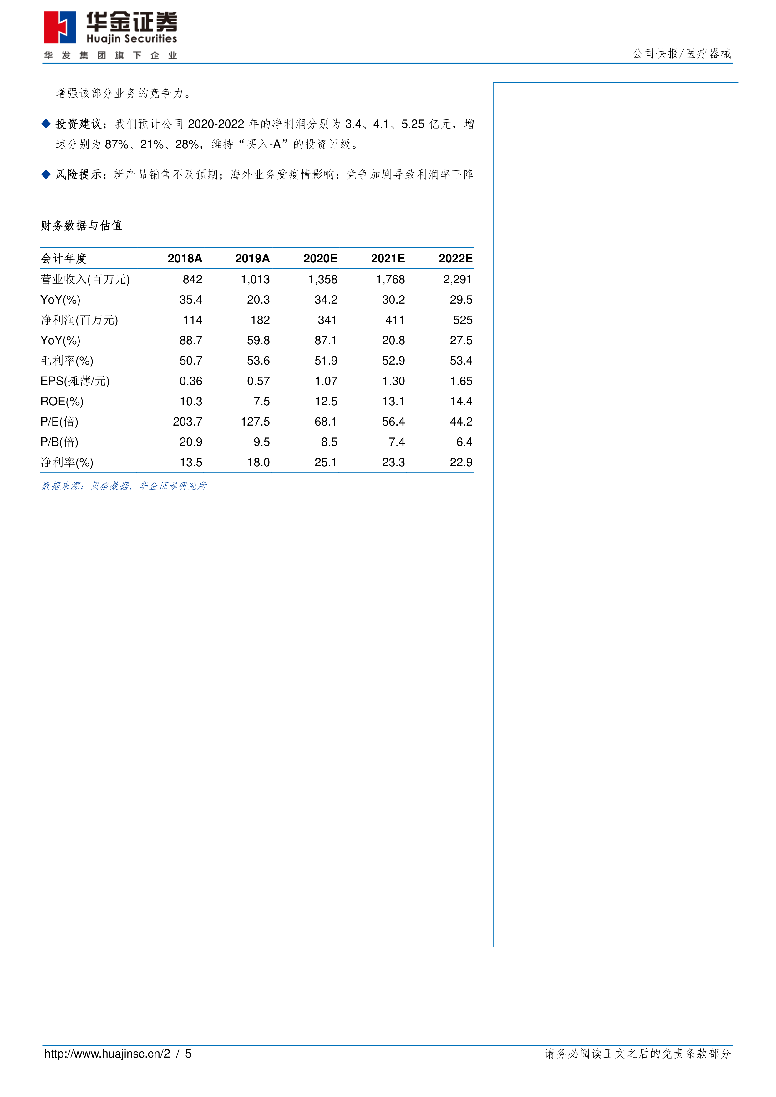 投资建议:我们预计公司2020-2022年的净利润分别为3.4、4.1、5.25亿元,增速分别为87%、21%、28%,维持“买入-A”的投资评级。