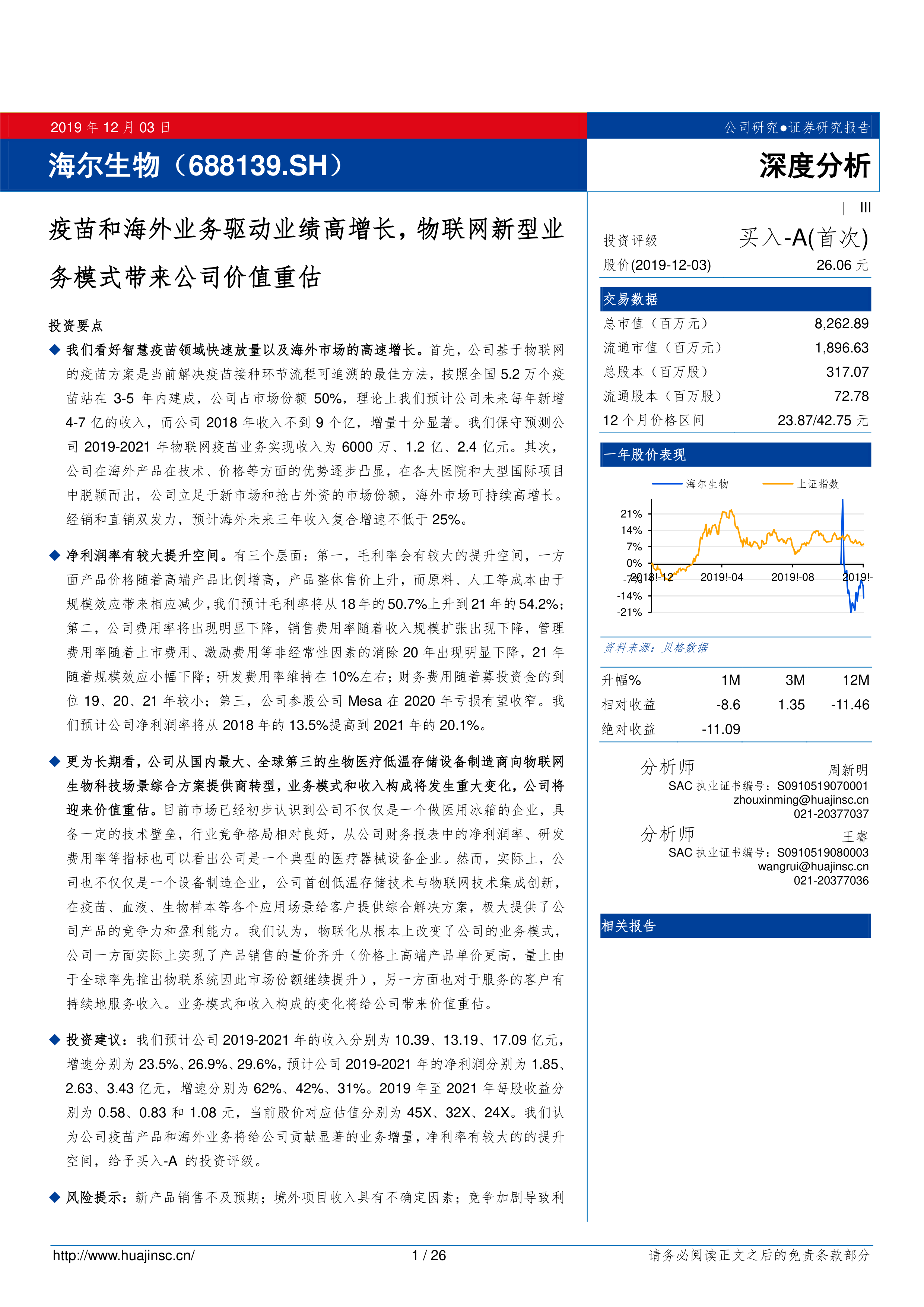 疫苗和海外业务驱动业绩高增长,物联网新型业务模式带来公司价值重估