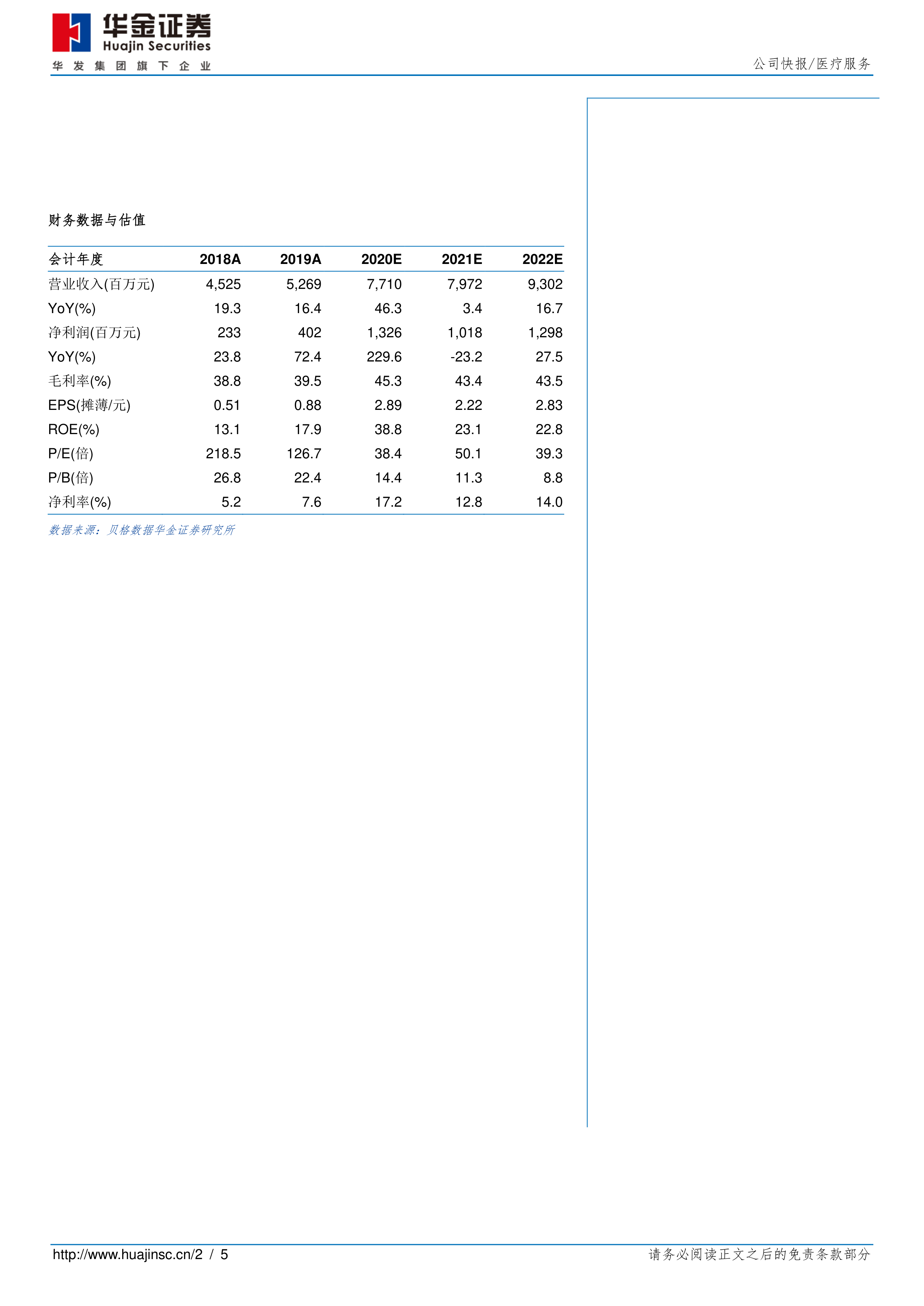 跑马圈地基本完成,实验室将开始大规模盈利:目前公司全国布局基本完成,已覆盖90%人口的地区。按经验来看,独立实验室盈亏平衡时间为3-5年,公司除5大核心实验室外的32家实验室将开始大规模盈利。由于新冠核酸检测的高需求,实验室盈利步伐加快。随着公司各地区实验室的稳步经营,将有更多实验室开始盈利,成为公司业绩支柱。