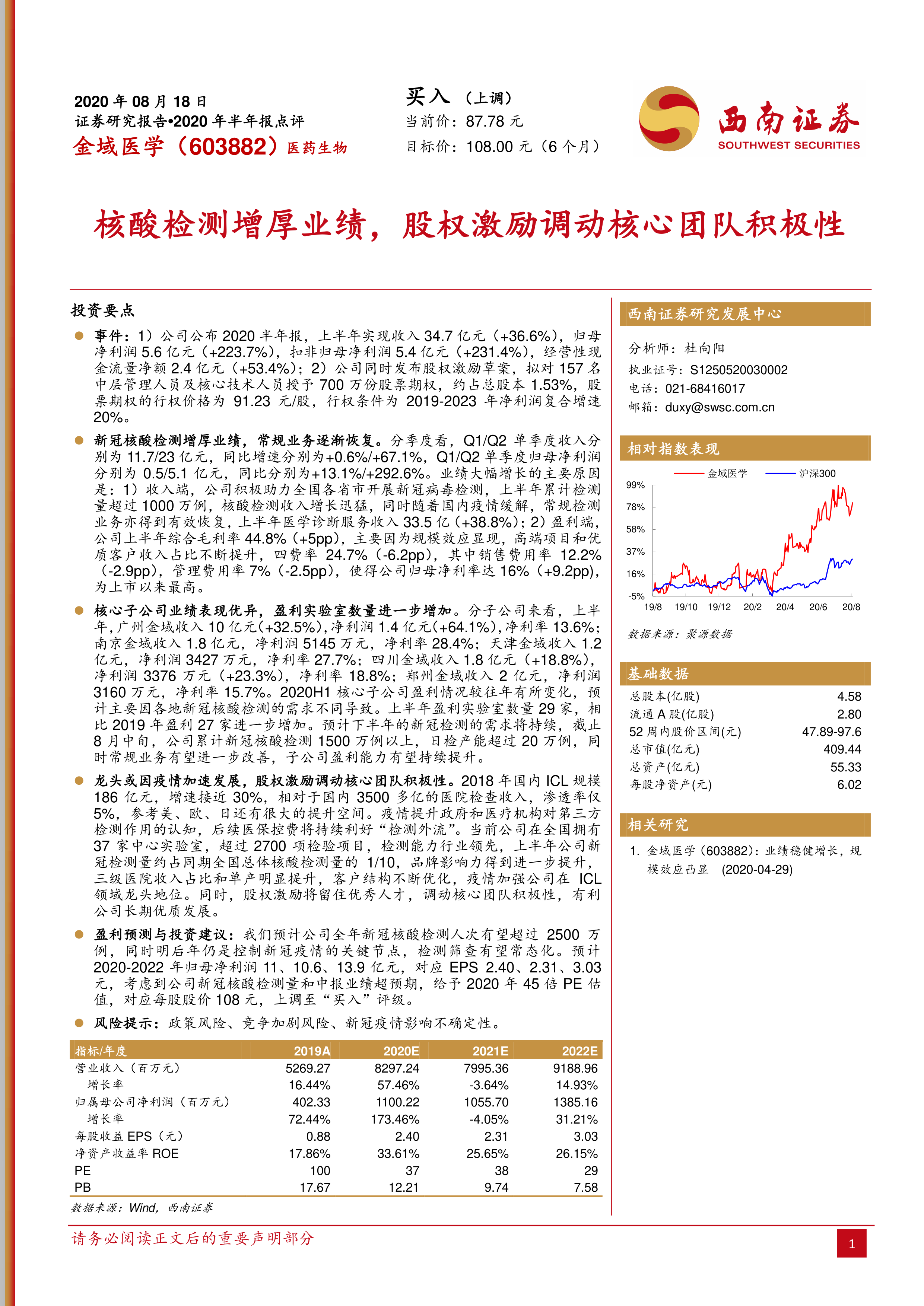 核酸检测增厚业绩,股权激励调动核心团队积极性