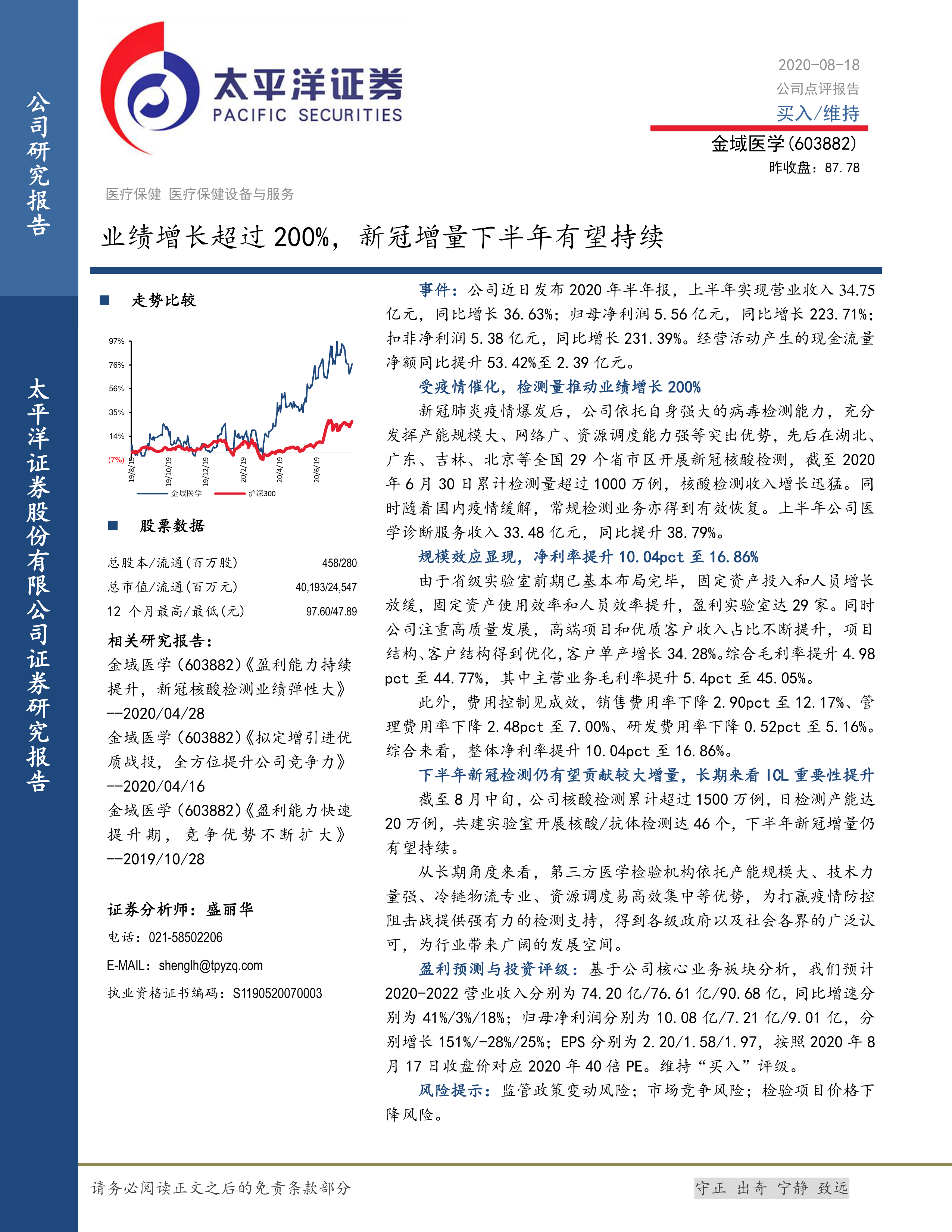 业绩增长超过200%,新冠增量下半年有望持续