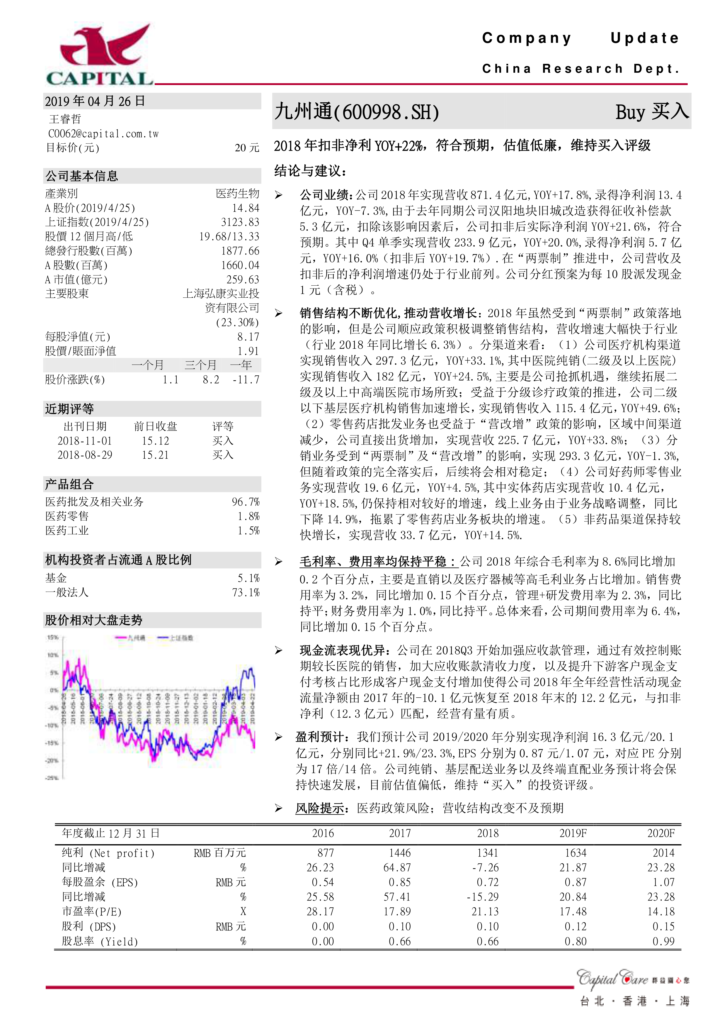2018年扣非净利YOY+22%,符合预期,估值低廉,维持买入评级