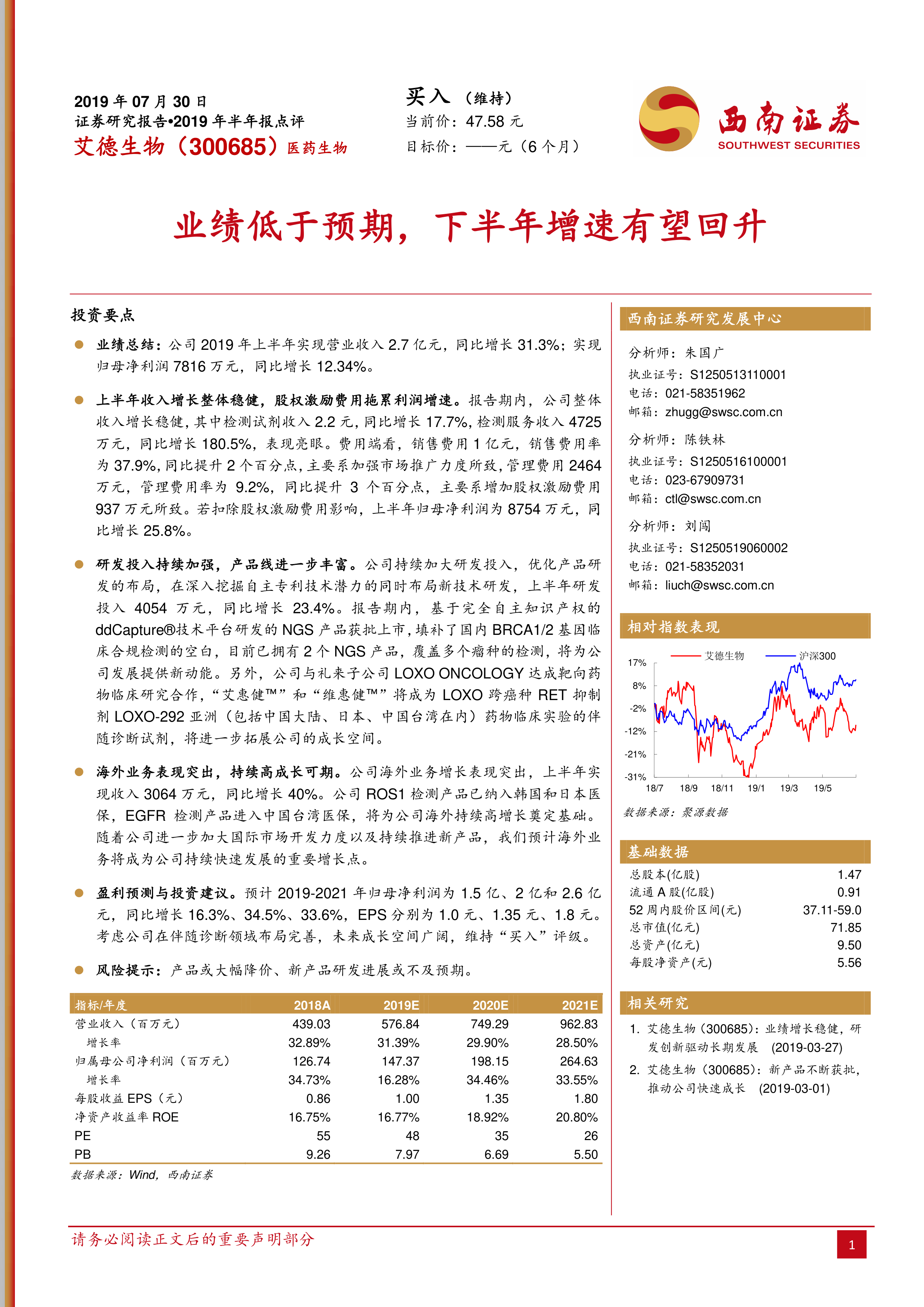 业绩低于预期,下半年增速有望回升