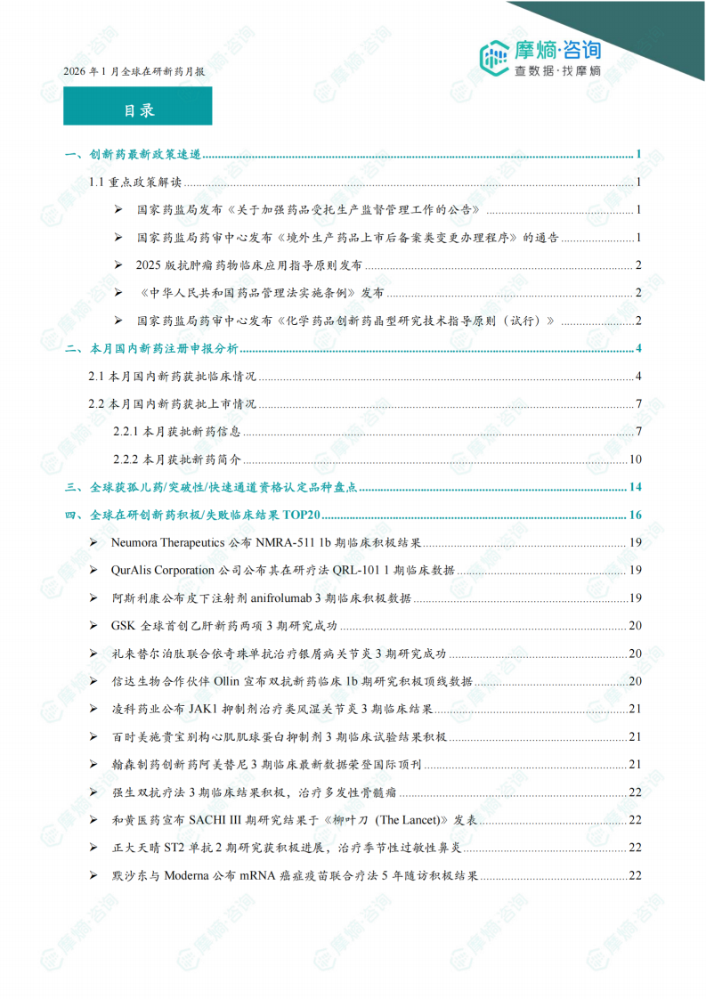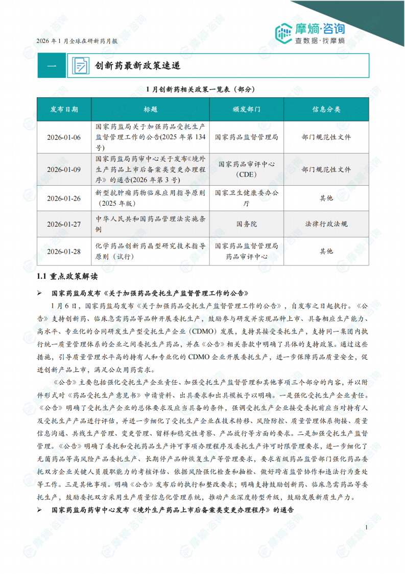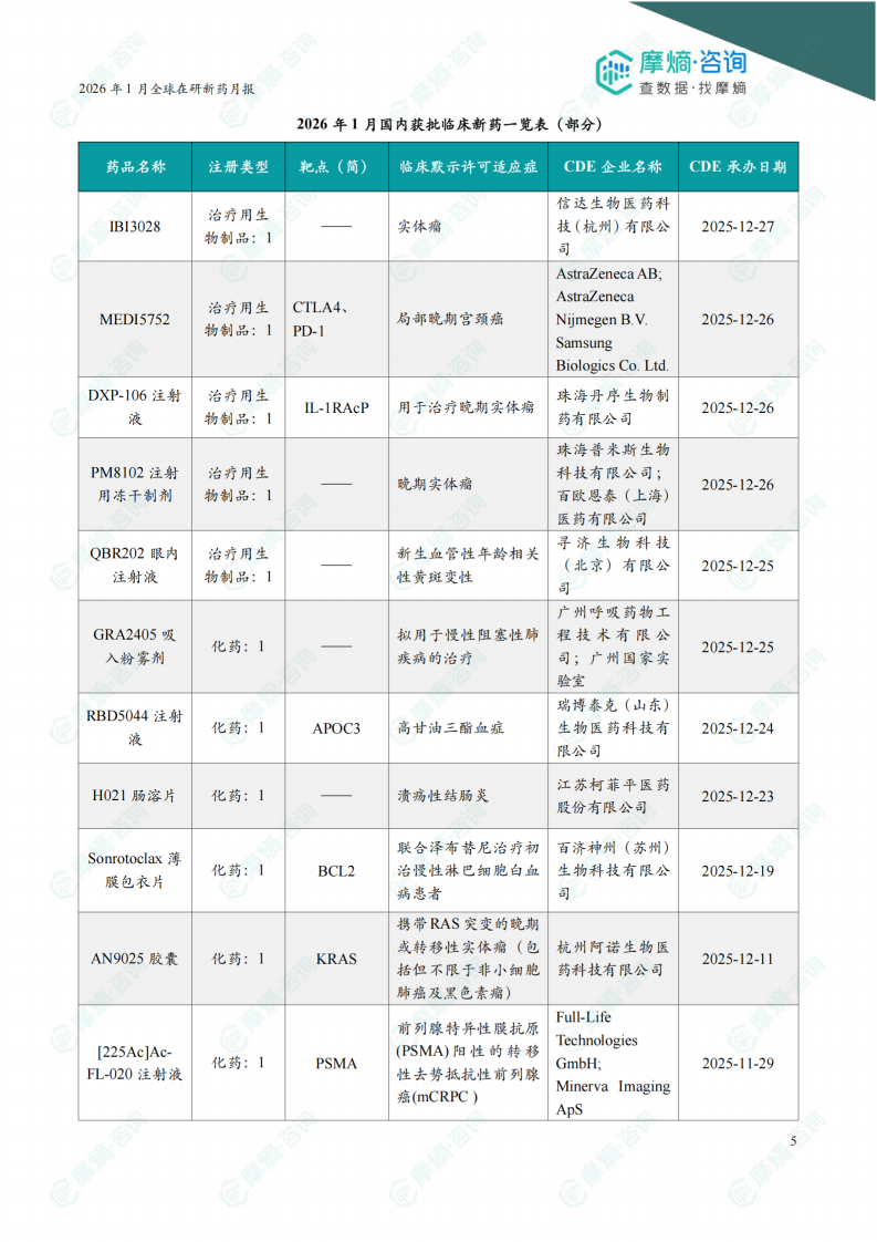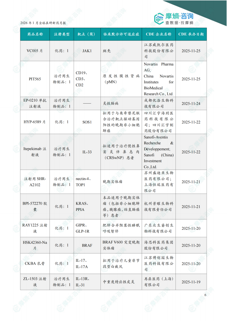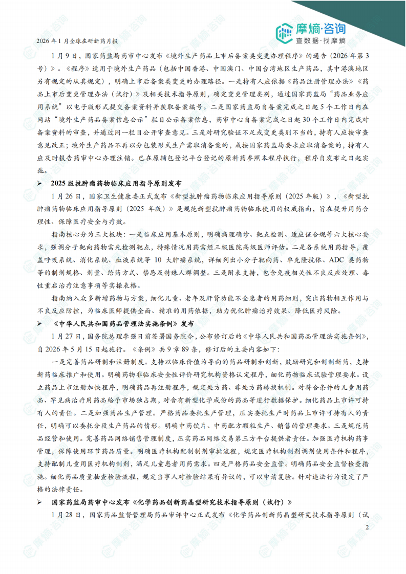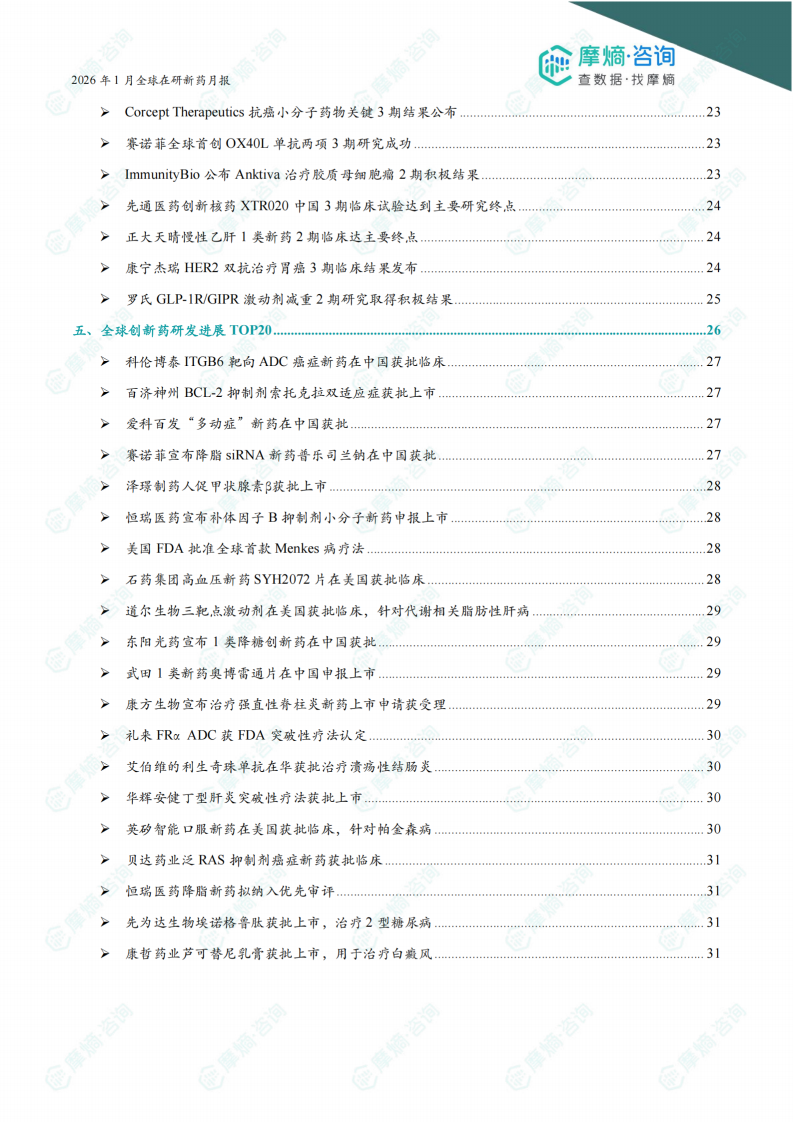 2026年1月全球在研新药月报
