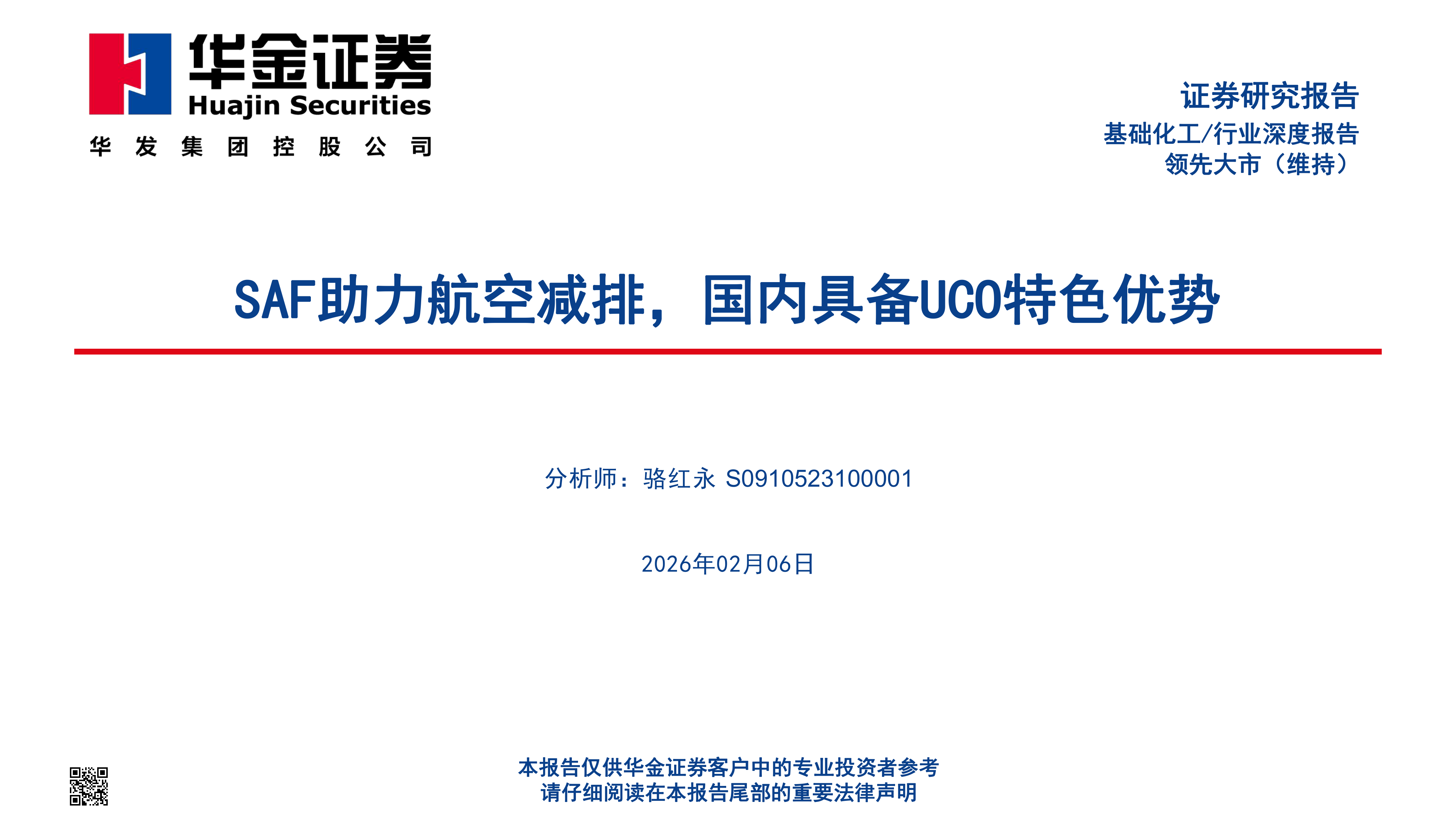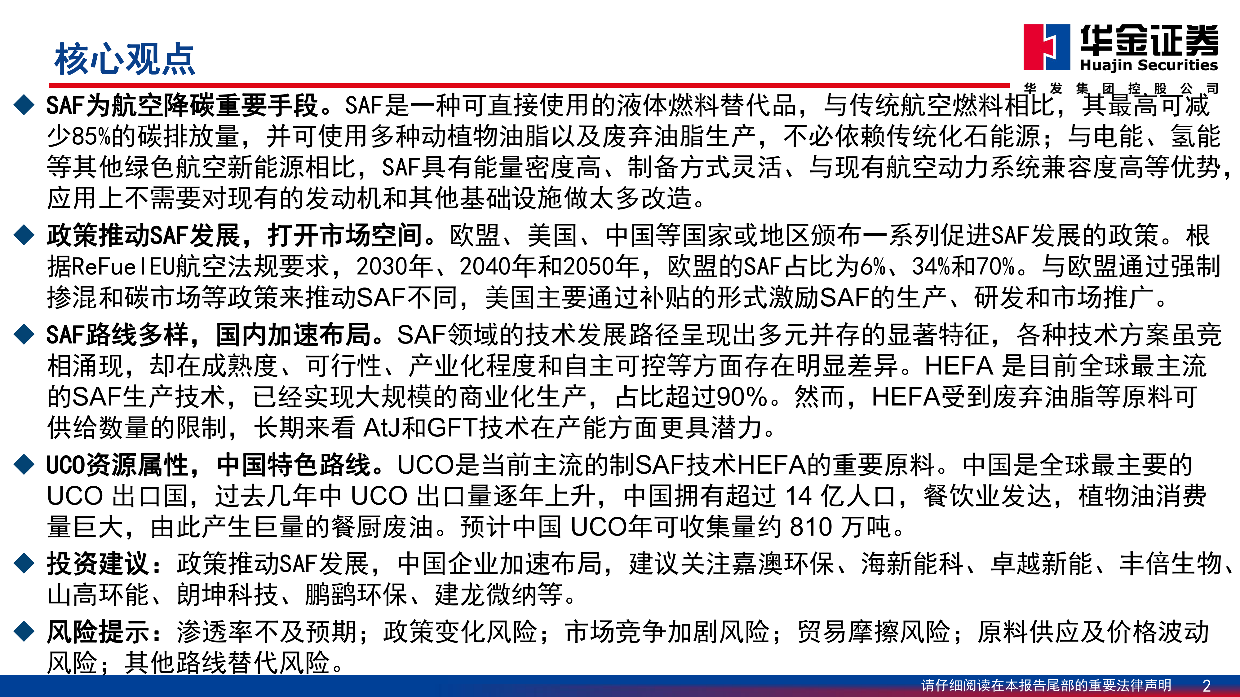 基础化工行业深度报告:SAF助力航空减排,国内具备UCO特色优势