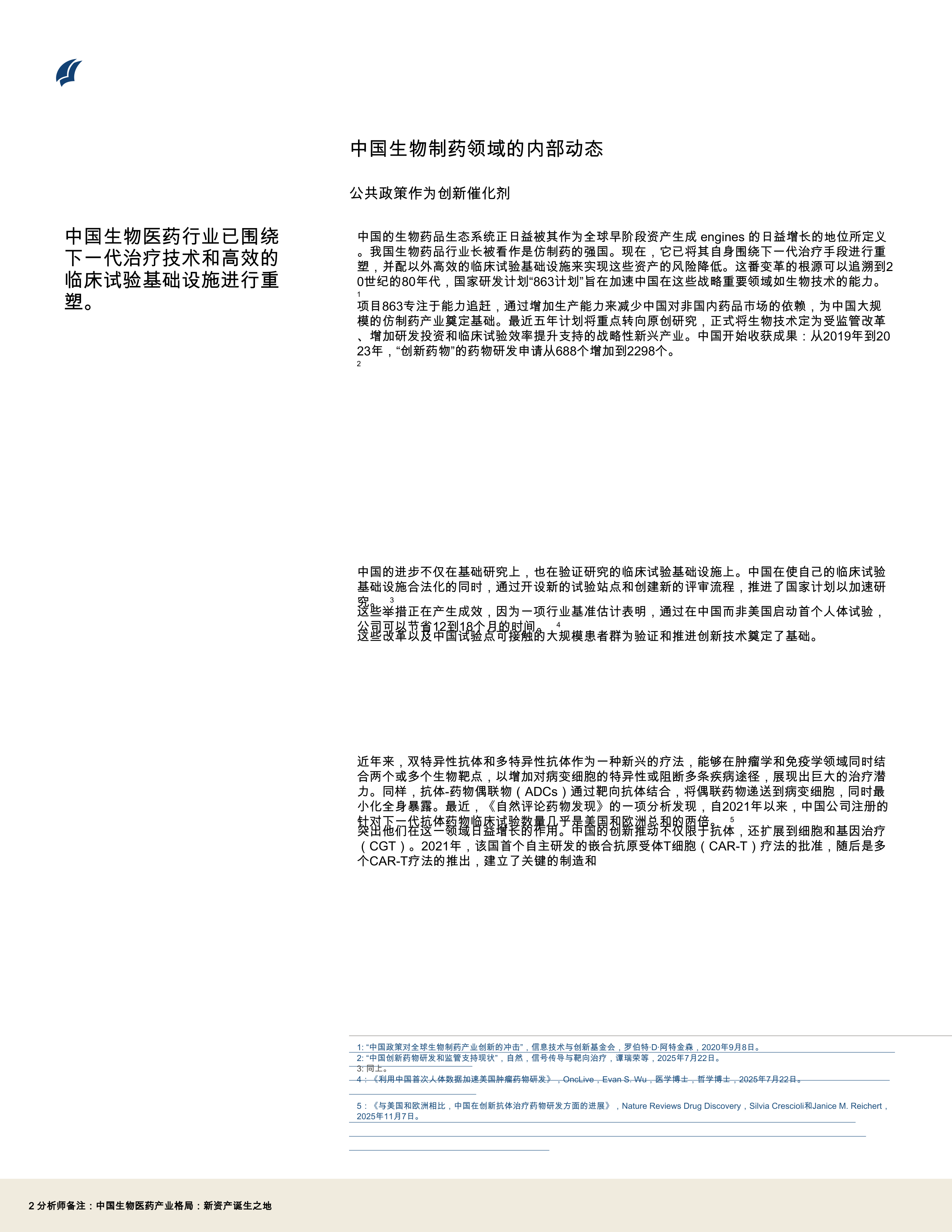 主要收获中国生物制药行业正步入一个更加成熟的阶段,其特征是自给自足能力的提升,随着国内资金、内部能力以及内部创新的不断增加,这些因素正日益支撑着发展和商业化进程。