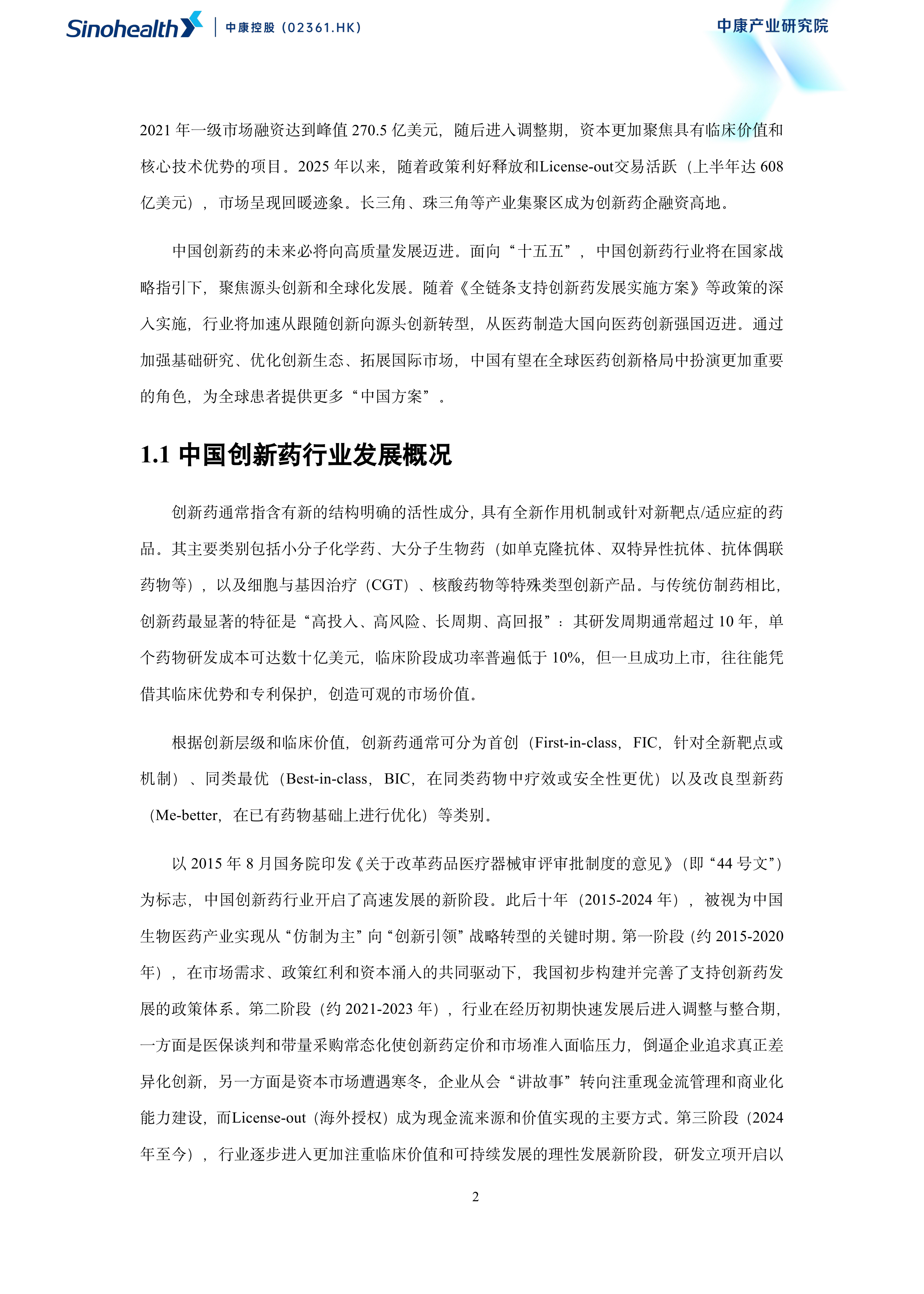 自2015年国务院发布《关于改革药品医疗器械审评审批制度的意见》(“44号文”)以来,中国创新药行业经历了深刻的战略转型与系统性重构,实现了从“仿制为主”向“创新引领”的历史性跨越。过去十年间,在政策红利、市场需求、资本投入和技术创新的多重驱动下,中国已成功构建起覆盖研发、审评、支付、应用全链条的创新药产业生态体系。