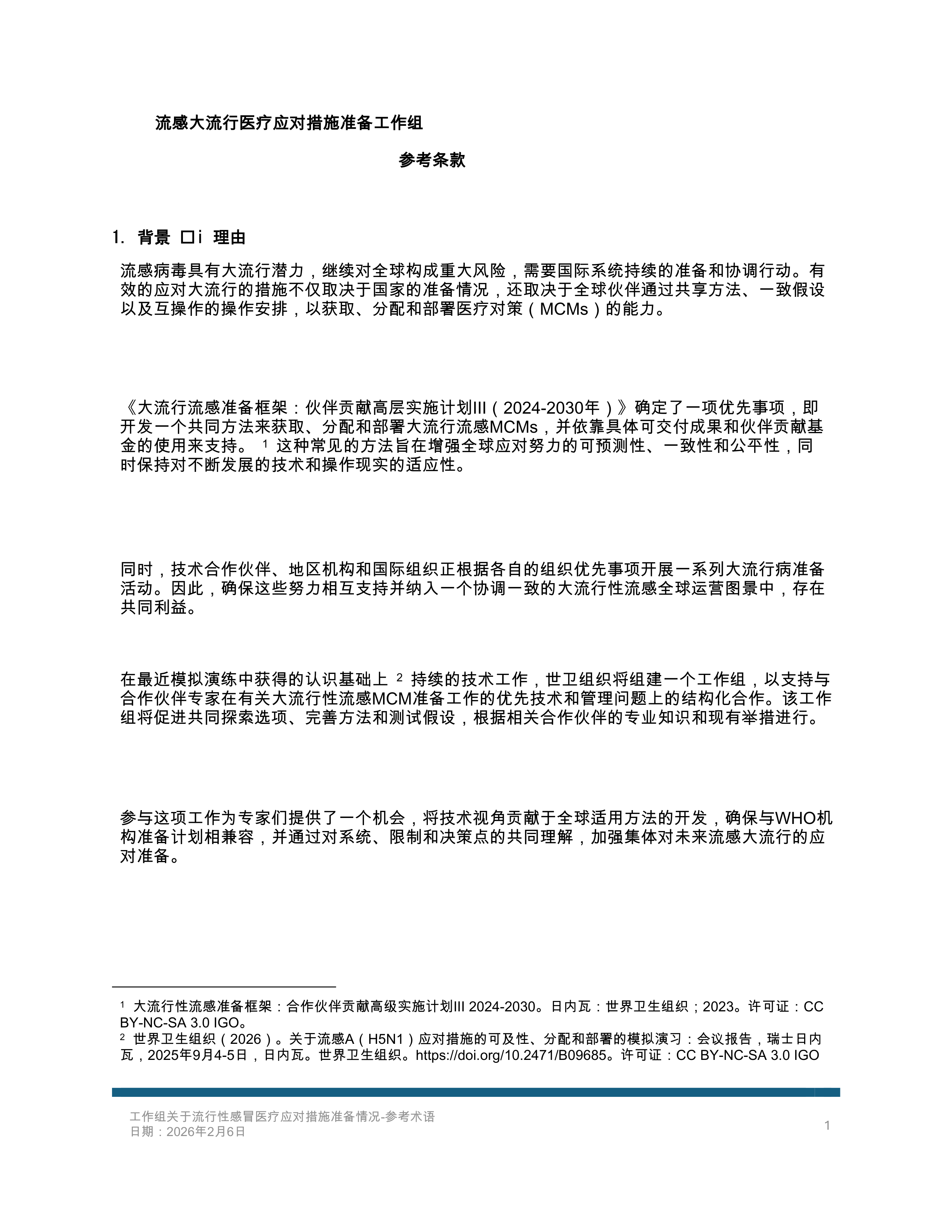 流感病毒具有大流行潜力,继续对全球构成重大风险,需要国际系统持续的准备和协调行动。有效的应对大流行的措施不仅取决于国家的准备情况,还取决于全球伙伴通过共享方法、一致假设以及互操作的操作安排,以获取、分配和部署医疗对策(MCMs)的能力。