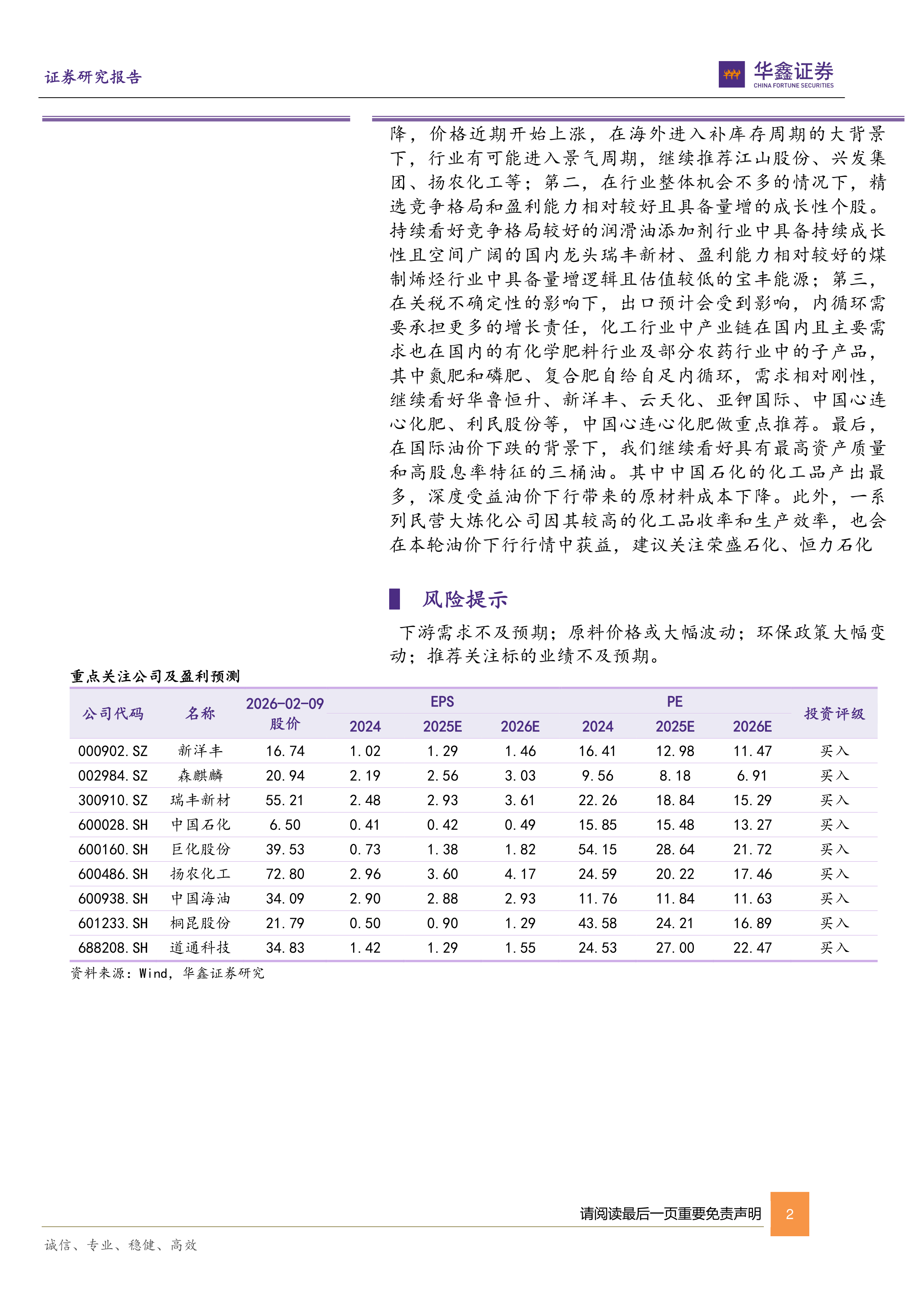 下游需求不及预期;原料价格或大幅波动;环保政策大幅变动;推荐关注标的业绩不及预期。