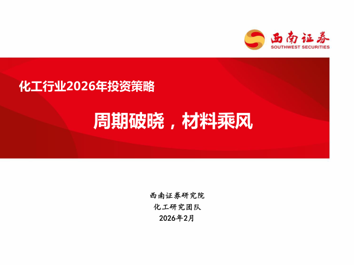 化工行业2026年投资策略:周期破晓,材料乘风