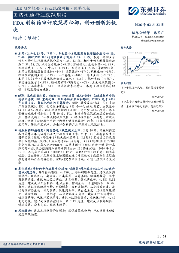 医药生物行业跟踪周报:FDA创新药审评政策再松绑,利好创新药板块