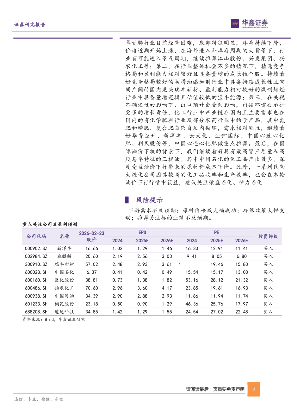 下游需求不及预期;原料价格或大幅波动;环保政策大幅变动;推荐关注标的业绩不及预期。
