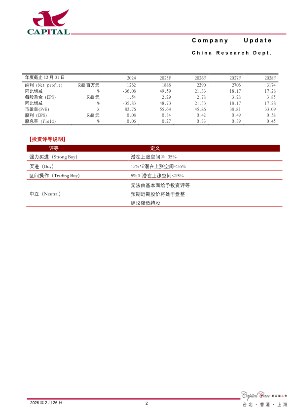 公司业绩:公司发布业绩快报,2025年共实现营收138.2亿元,同比+34.2%;归母净利润18.9亿元,同比+49.6%,扣非后净利17.9亿元,同比+77.0%,公司业绩符合预期。其中Q4单季度实现营收49.6亿元,同比+48.3%,归母净利润约7.7亿元,同比增29.9%,扣非后净利7.4亿元,同比增35.0%。