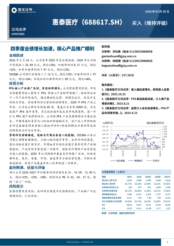 2026年2月26日,公司发布2025年度业绩快报:2025年公司预计实现收入25.84亿元,同比+25%;归母净利润8.21亿元,同比+22%;扣非归母净利润7.91亿元,同比+23%;