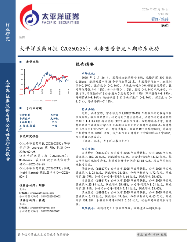 医药日报:礼来塞普替尼三期临床成功