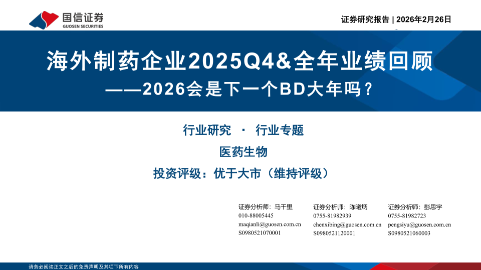 海外制药企业2025Q4&全年业绩回顾:2026会是下一个BD大年吗?