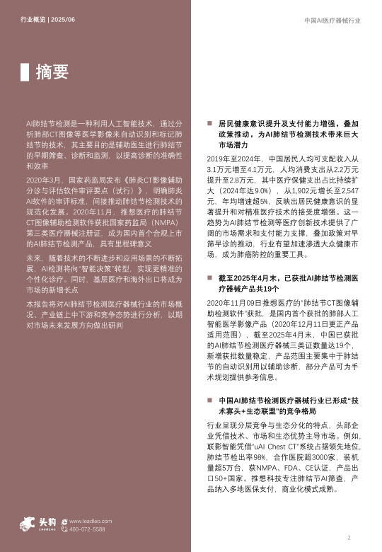 2025年中国AI肺结节检测医疗器械行业概览:三类证获批加速,AI肺结节检测产品商业化提速