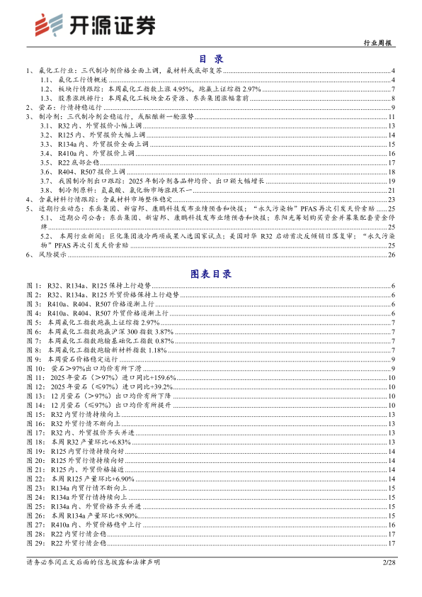 氟化工周行情:三代制冷剂价格全面上调,氟材料底部复苏迹象明显
